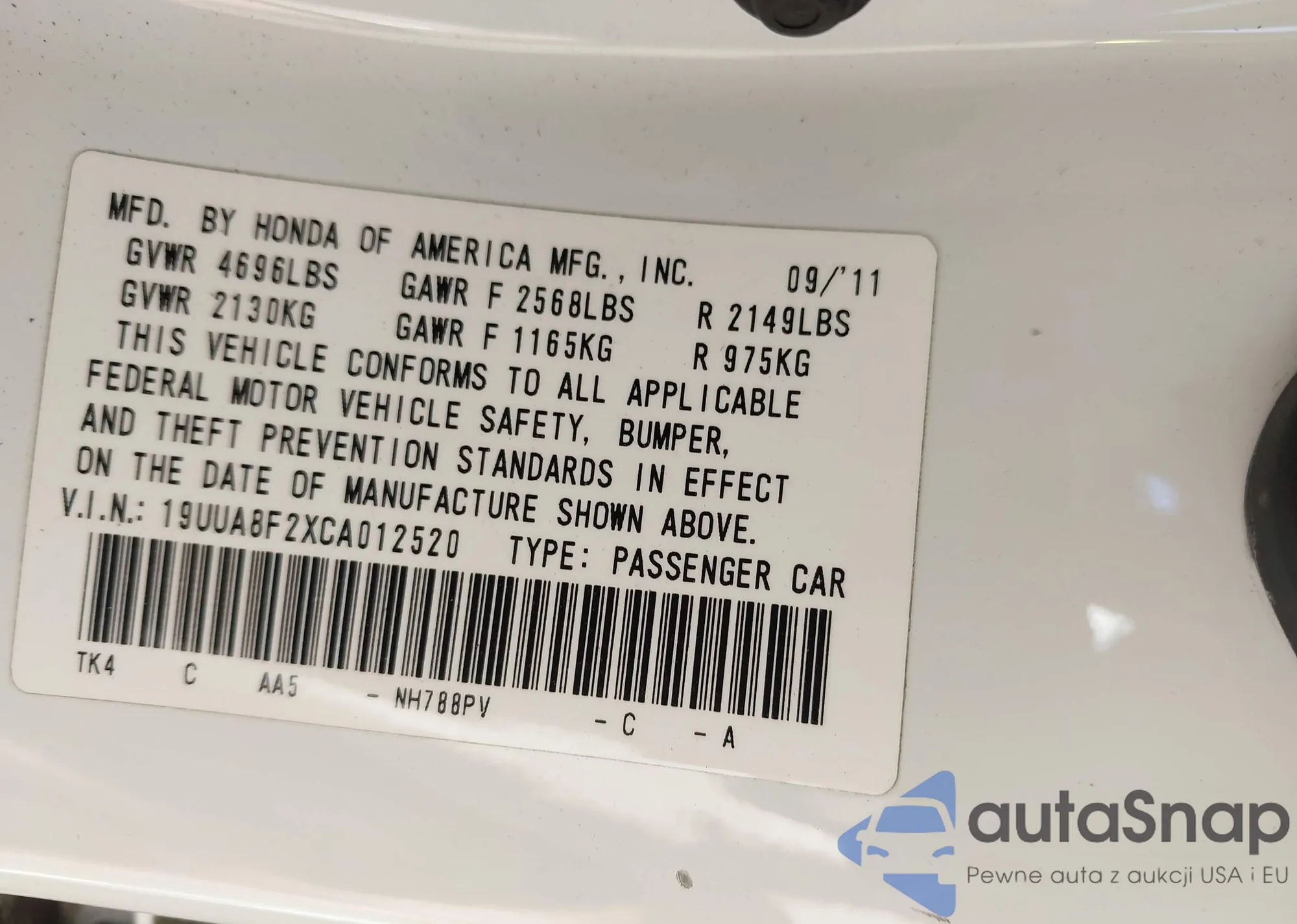 • VIN 19UUA8F2XCA012520