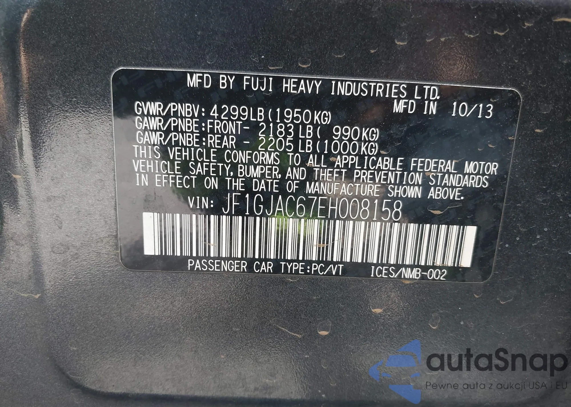 • VIN JF1GJAC67EH008158