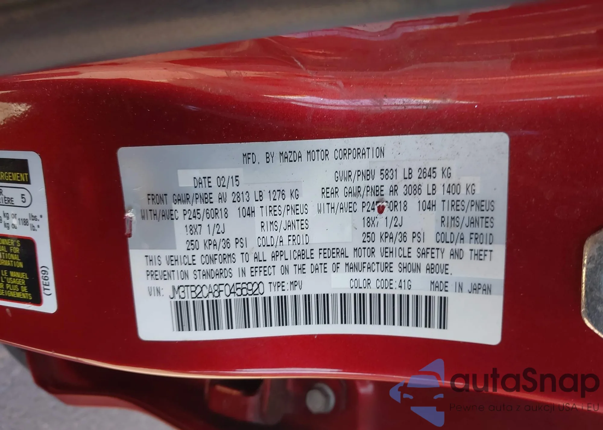 LOT: 41677506 VIN: JM3TB2CA8F0456920