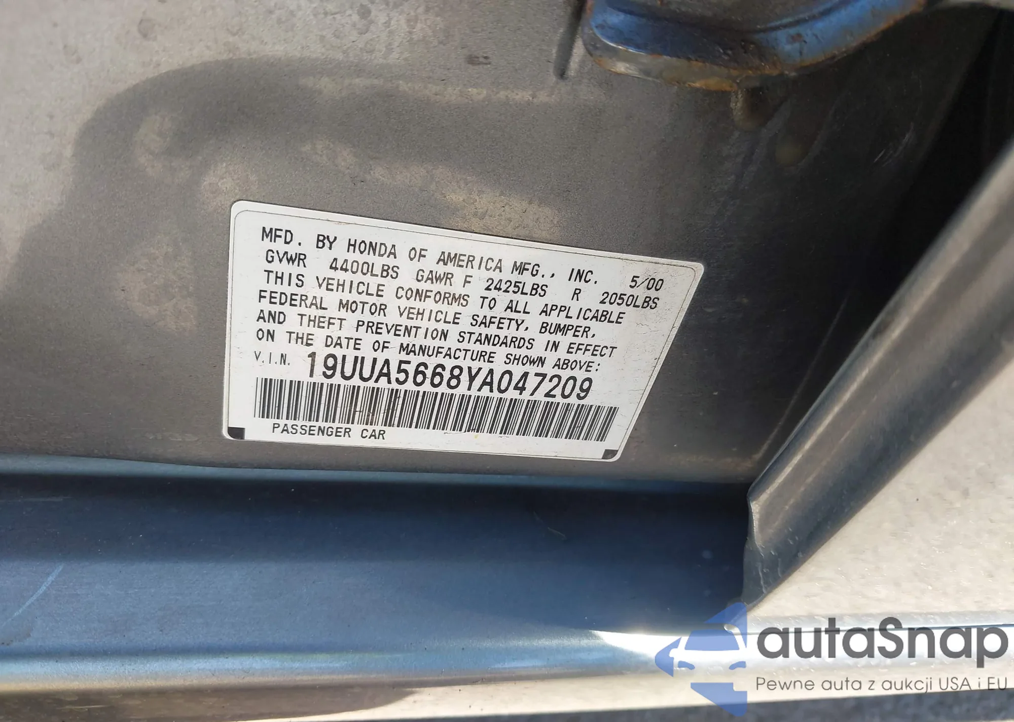 • VIN 19UUA5668YA047209