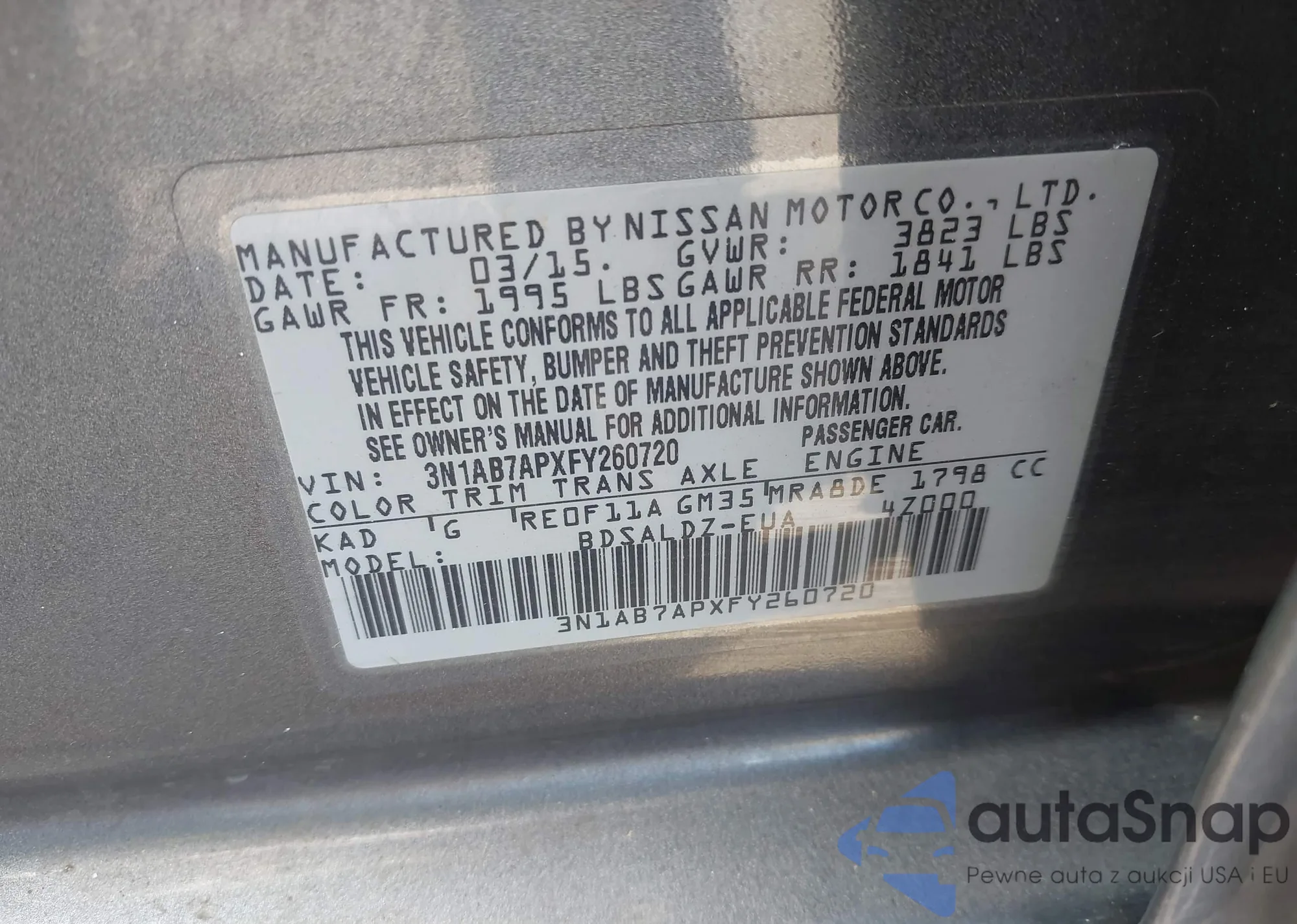 LOT: 42533593 VIN: 3N1AB7APXFY260720