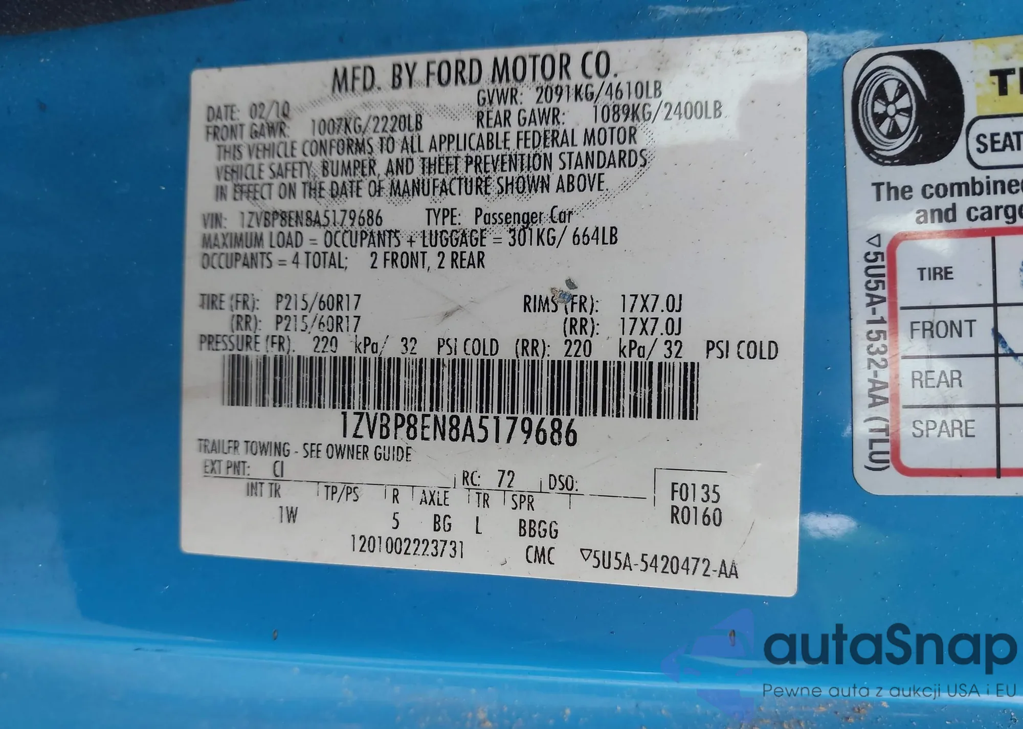• VIN 1ZVBP8EN8A5179686