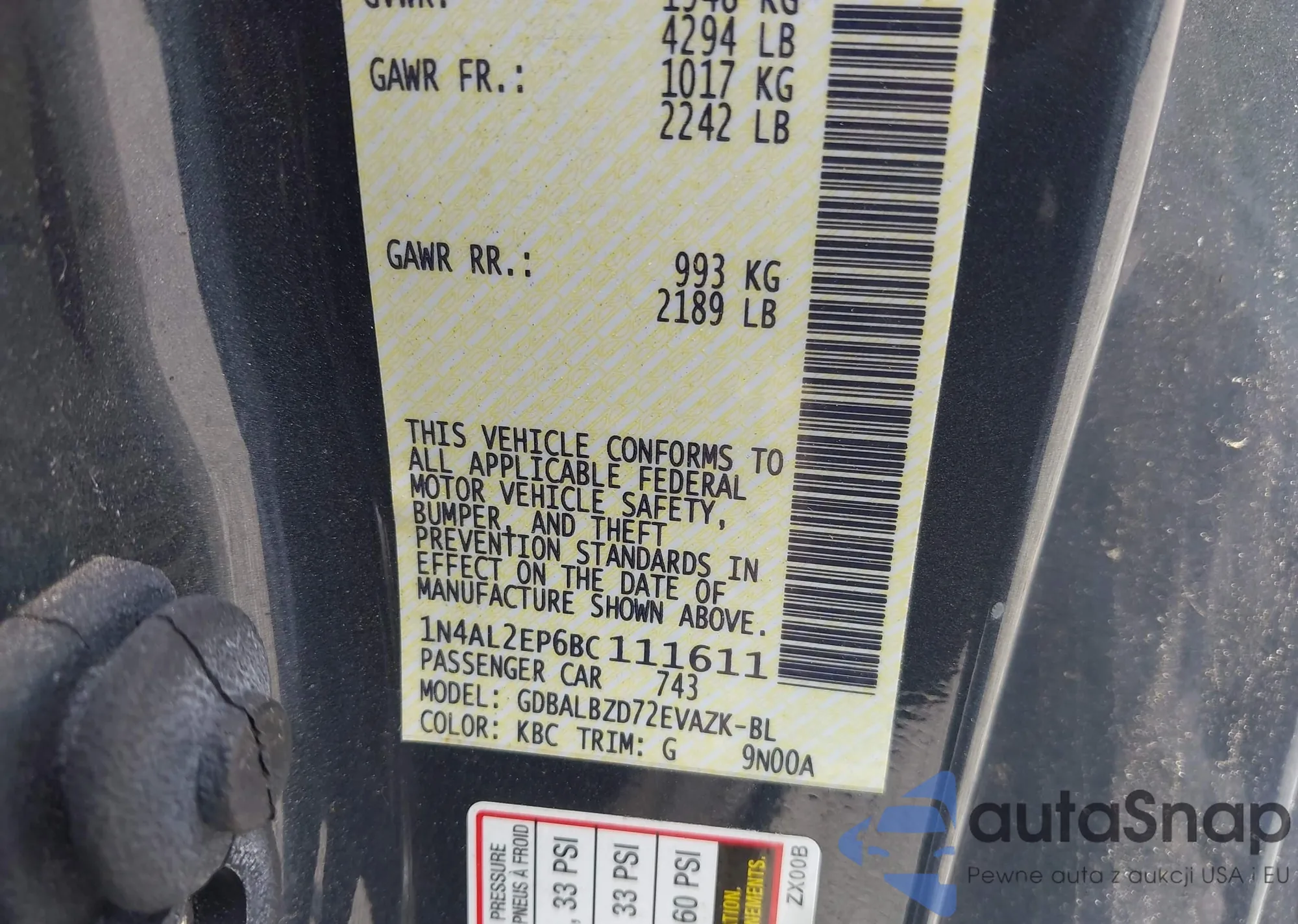 LOT: 42106809 VIN: WDDSJ4GB9EN073887