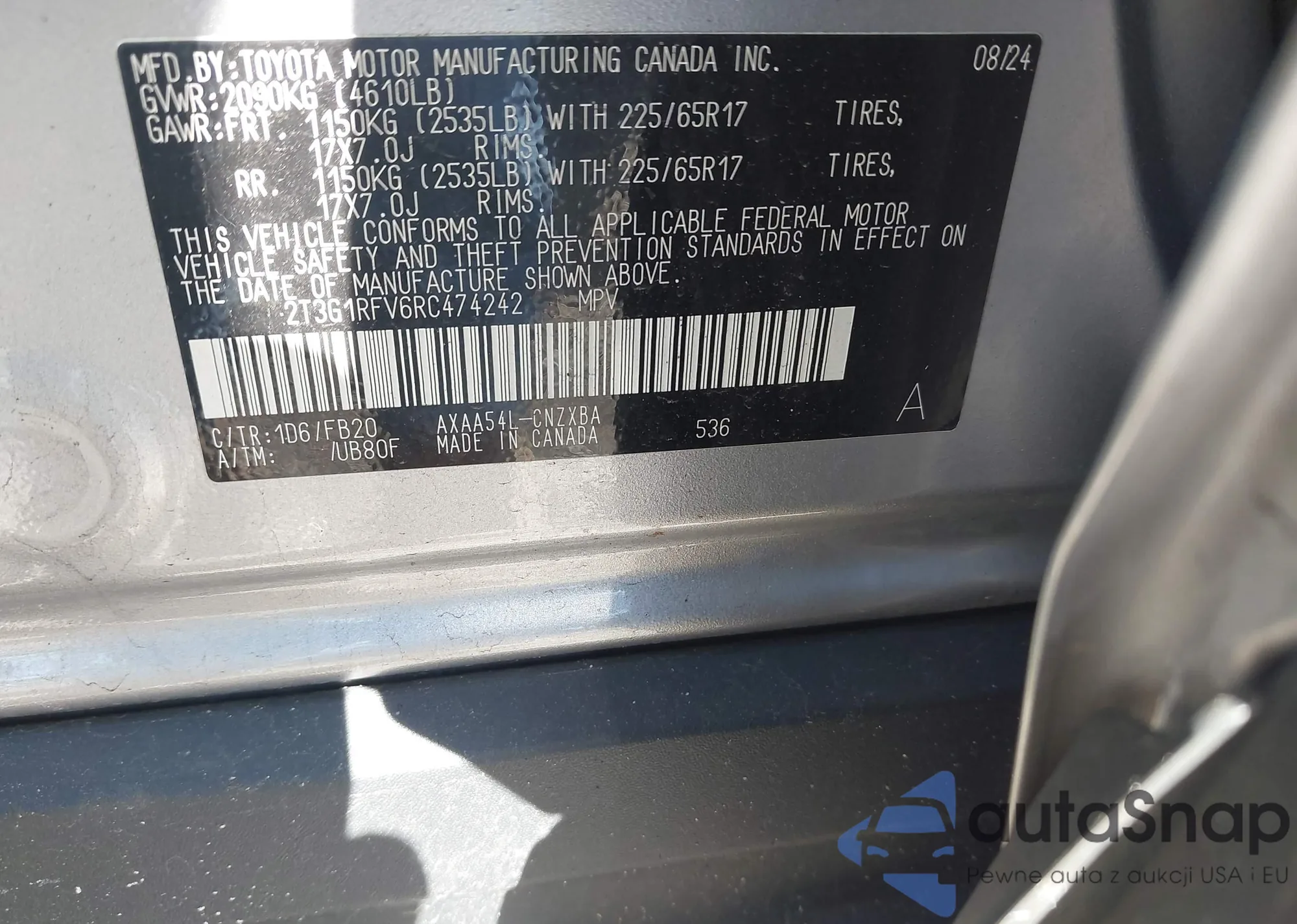 • VIN 2T3G1RFV6RC474242