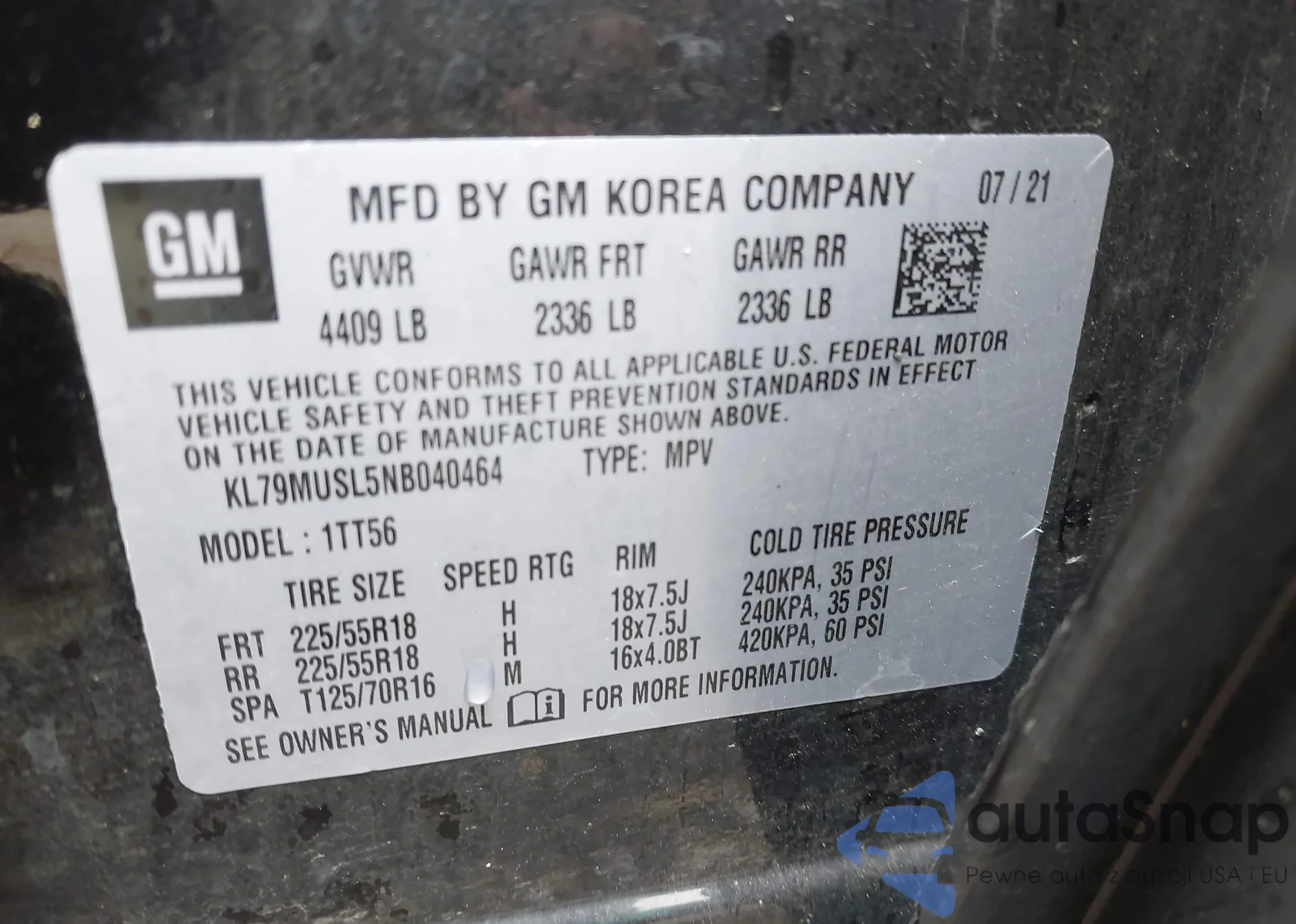 LOT: 42345011 VIN: 2G1105S36K9153377