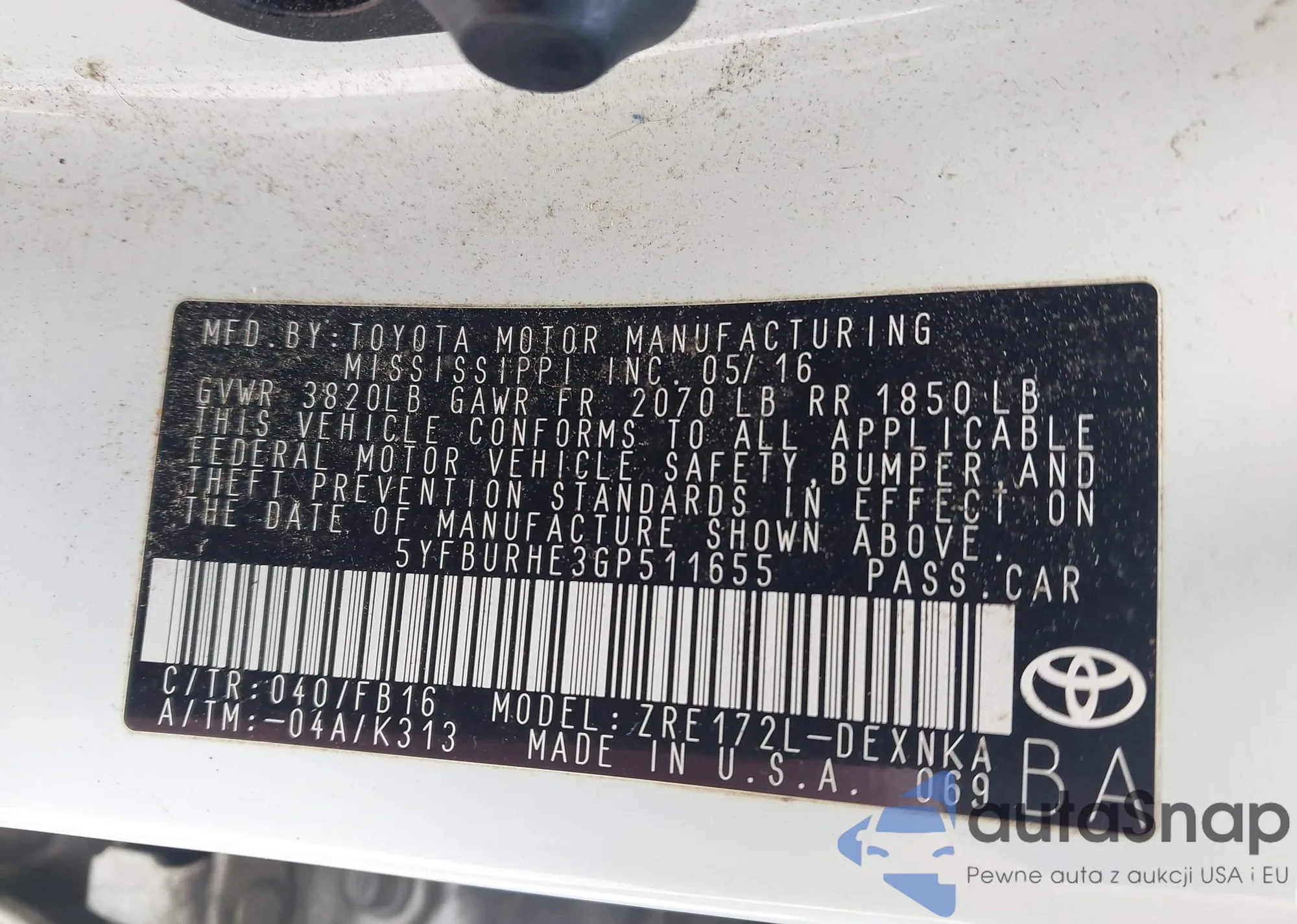 • VIN 5YFBURHE3GP511655