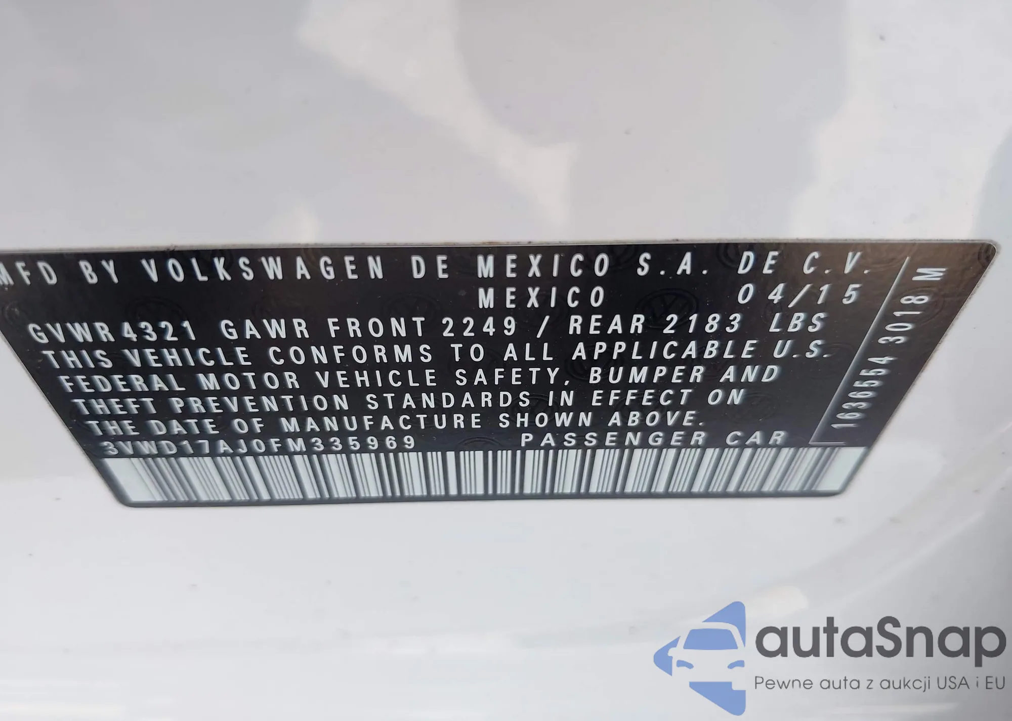 • VIN 2HKRM3H31FH505259