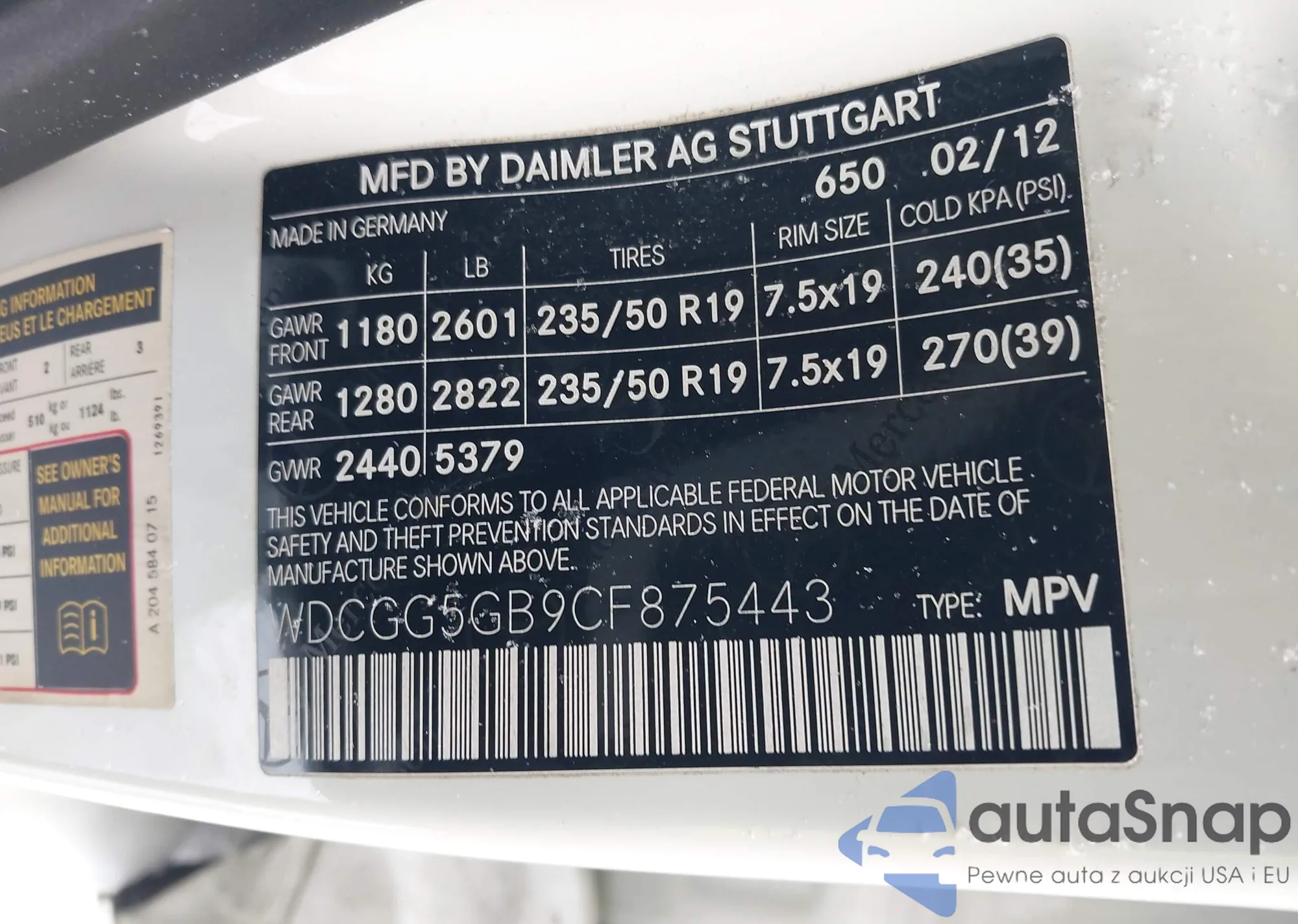 • VIN WDCGG5GB9CF875443