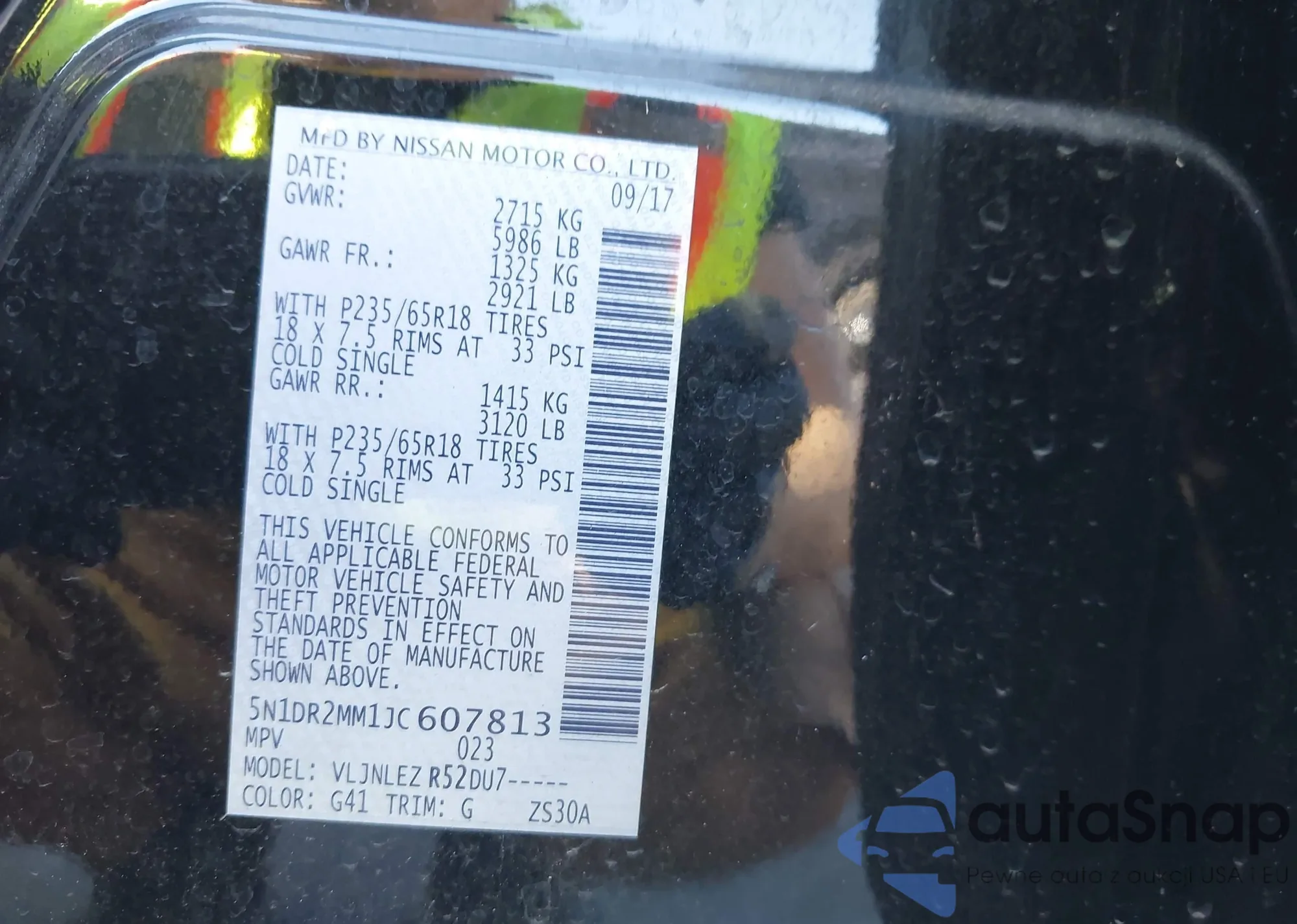 • VIN 5N1DR2MM1JC607813