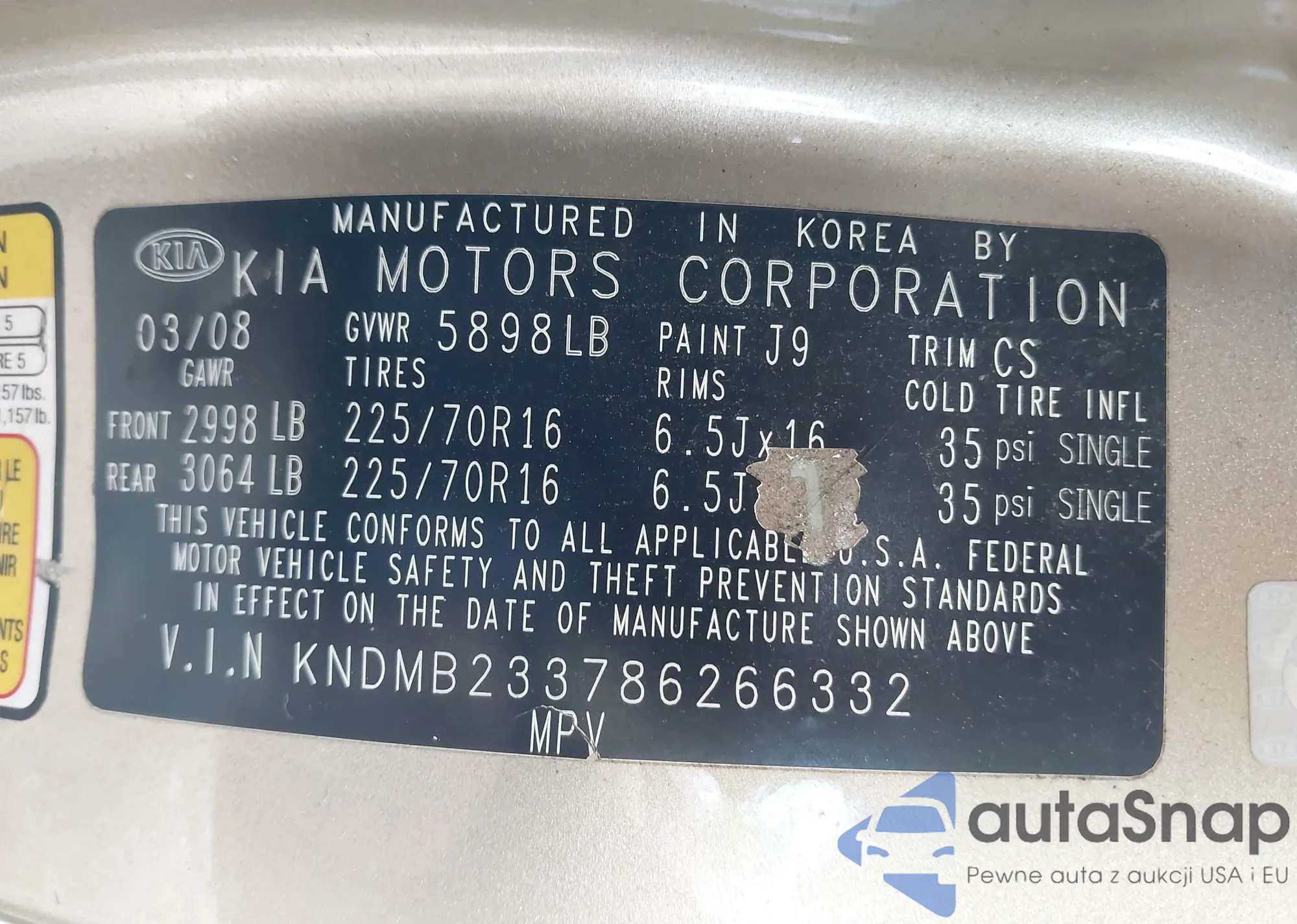 LOT: 41825292 VIN: JTDKB20U483352106