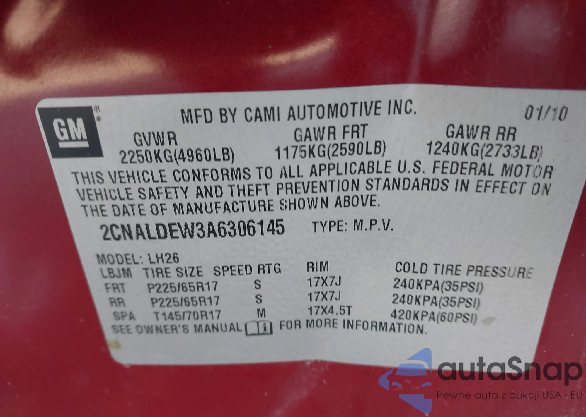 • VIN 2GNFLPE31D6154590