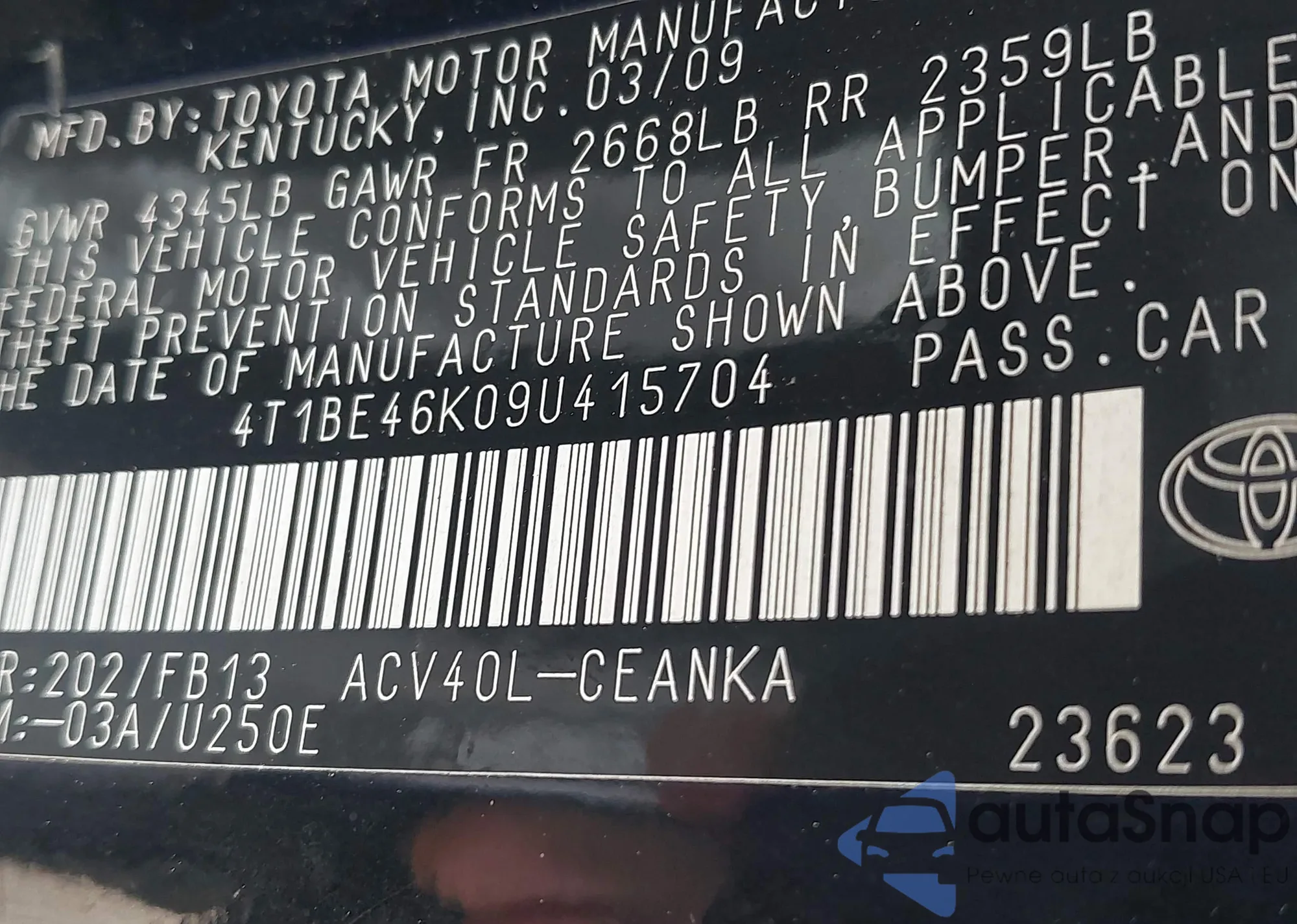 LOT: 42471057 VIN: JTDBT923971084996