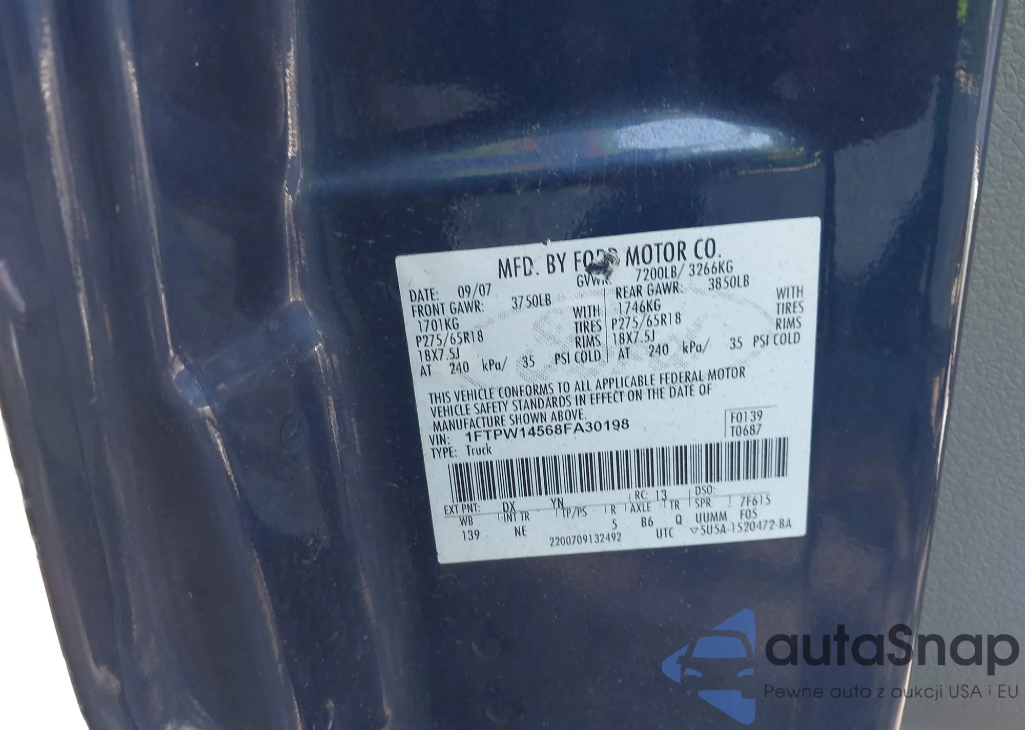 LOT: 42195987 VIN: 1FTPW14568FA30198