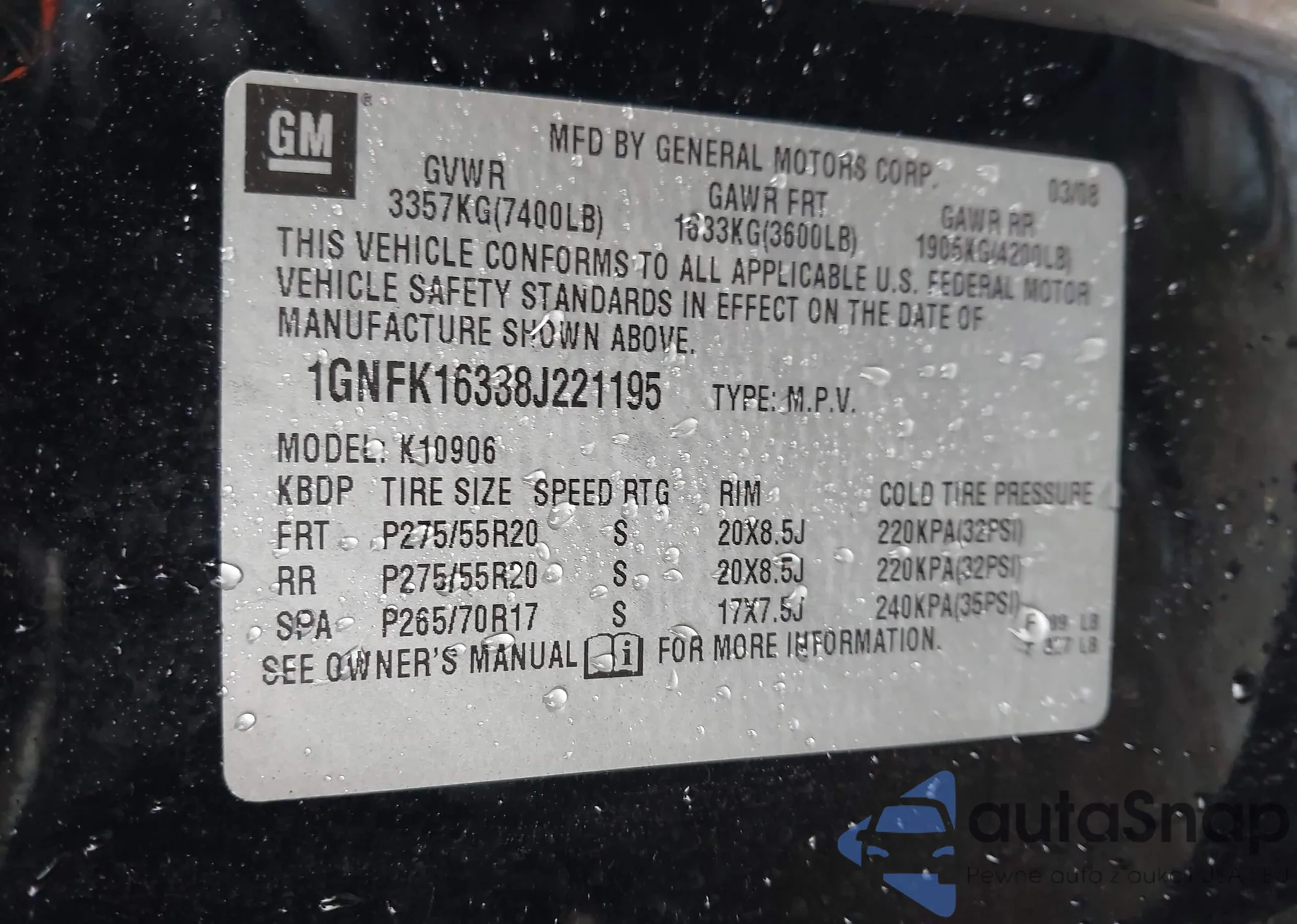 • VIN 1GNFK16338J221195