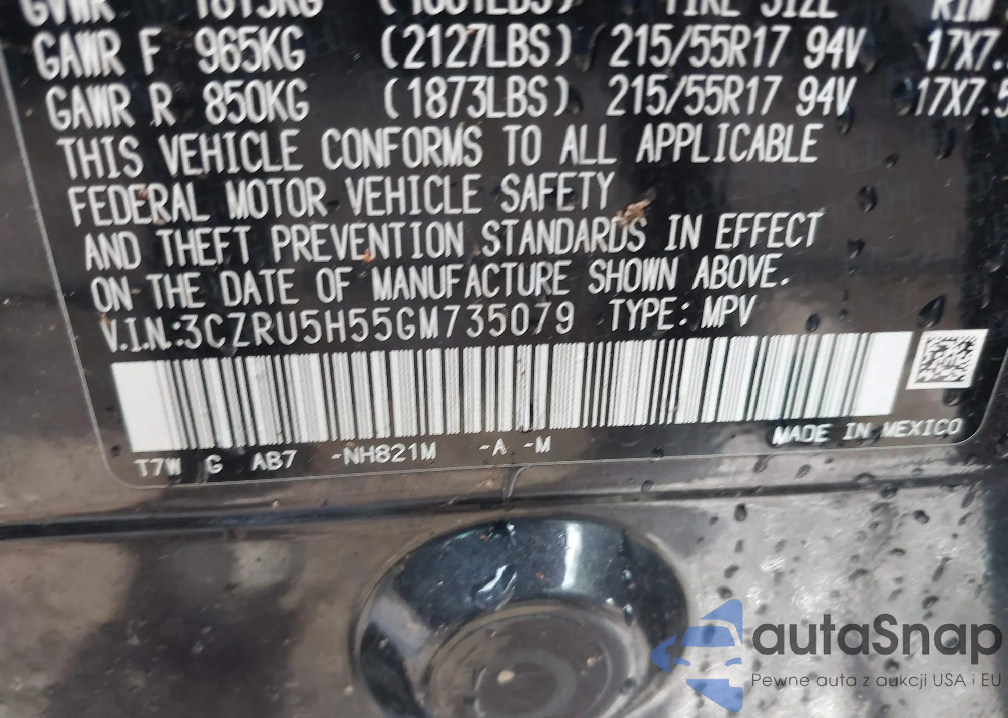 • VIN 3CZRU5H55GM735079