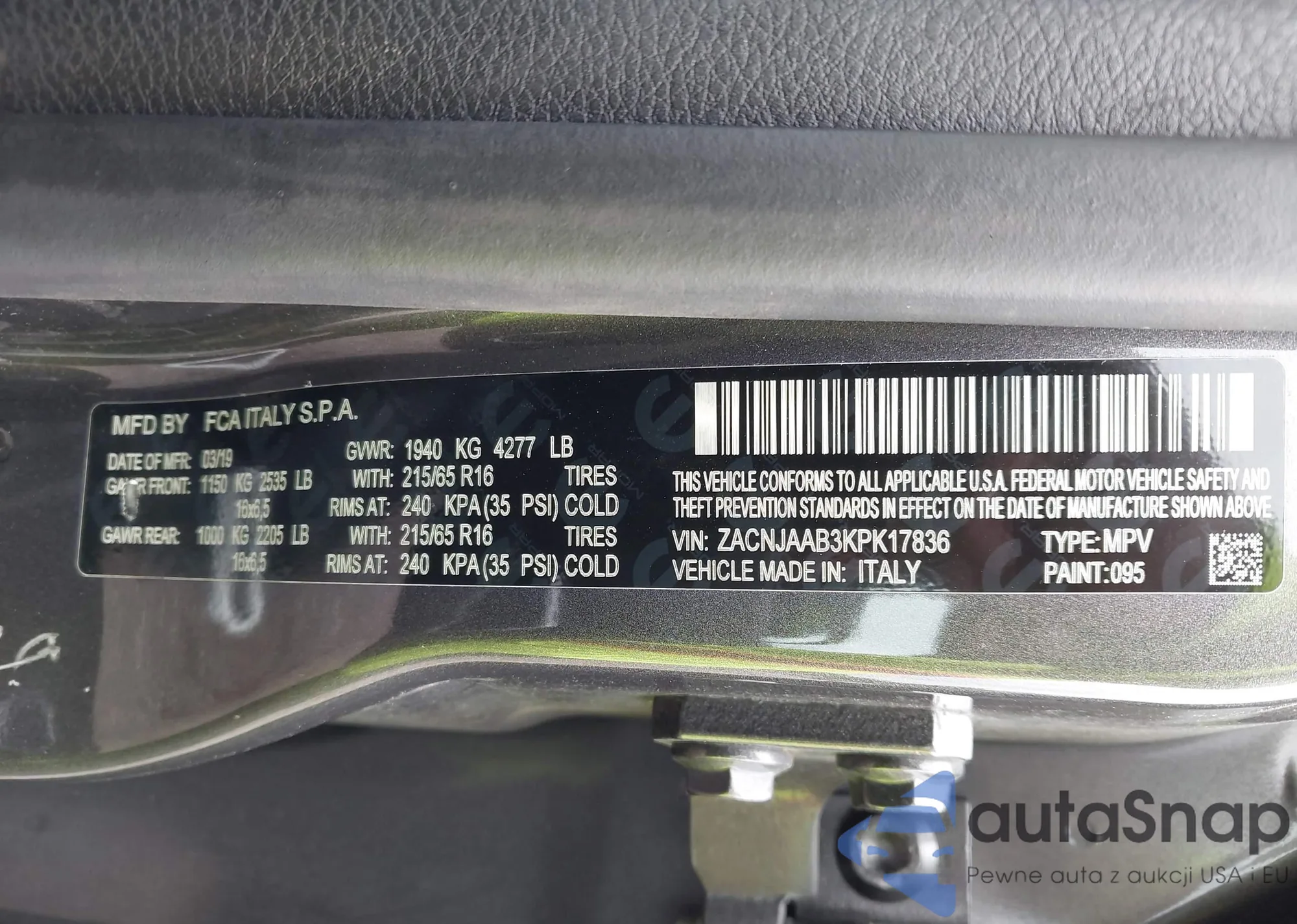 • VIN ZACNJAAB3KPK17836