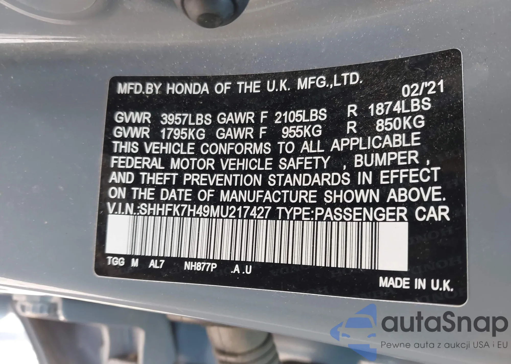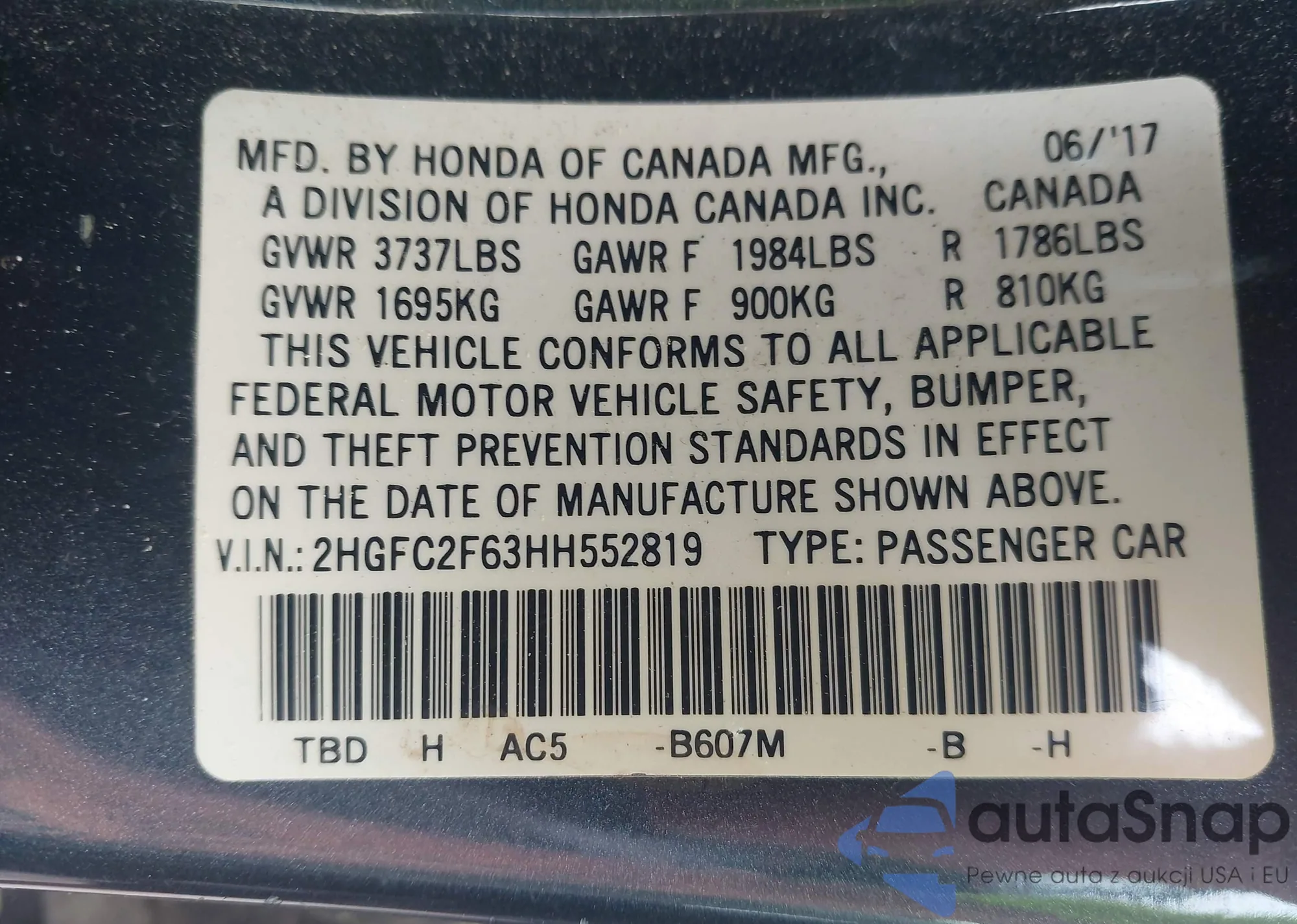• VIN SHHFK7H49MU217427