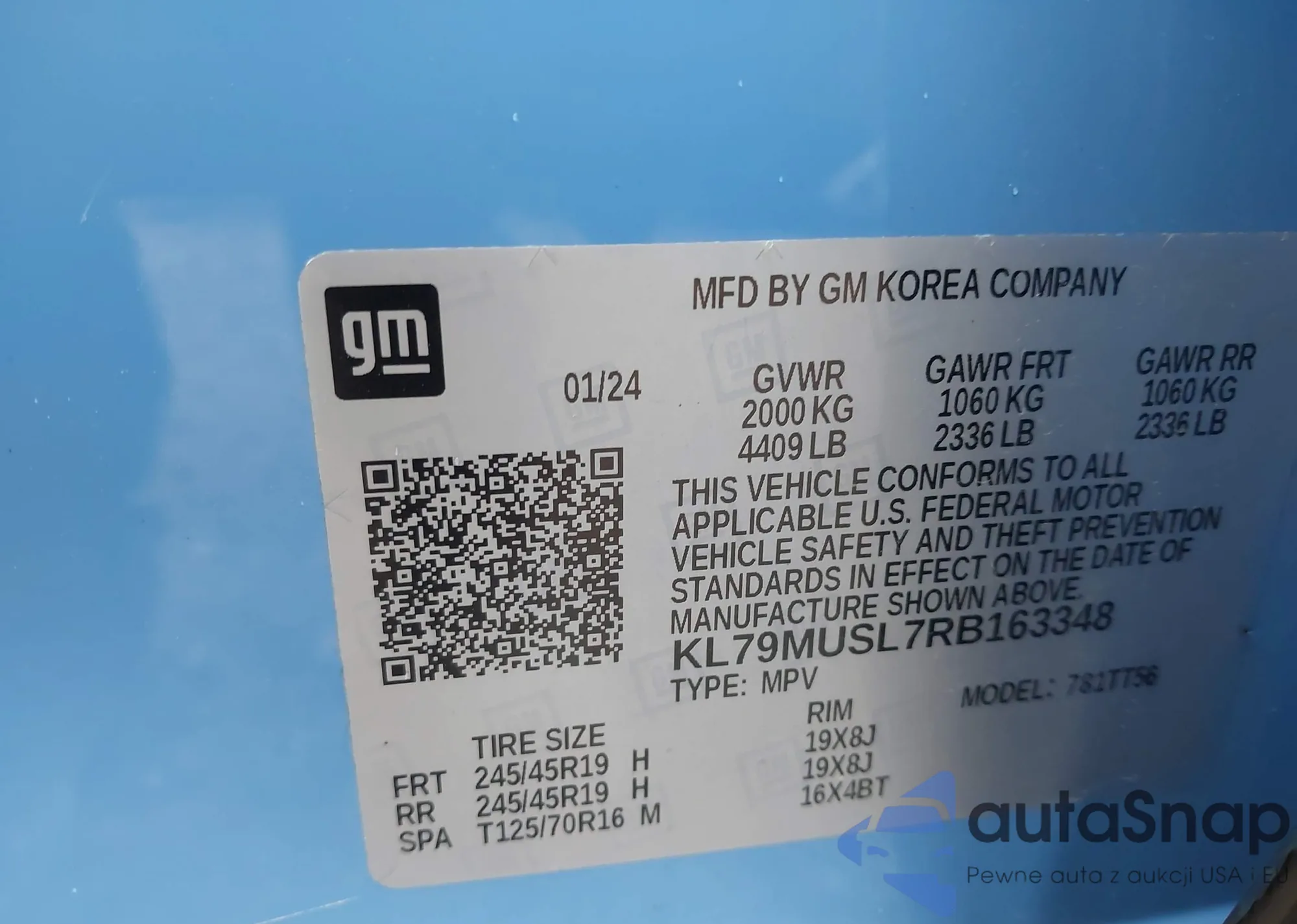 • VIN KL79MUSL7RB163348