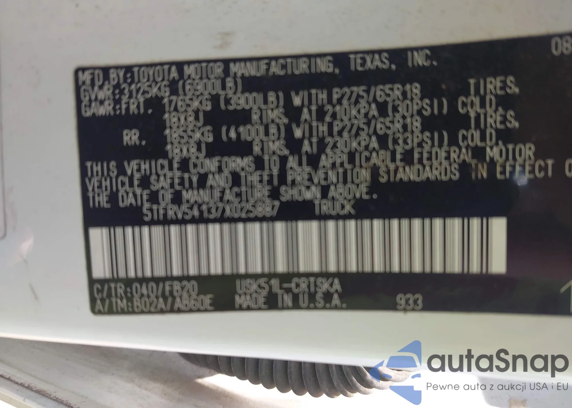 LOT: 42399164 VIN: 5TFRV54137X025887