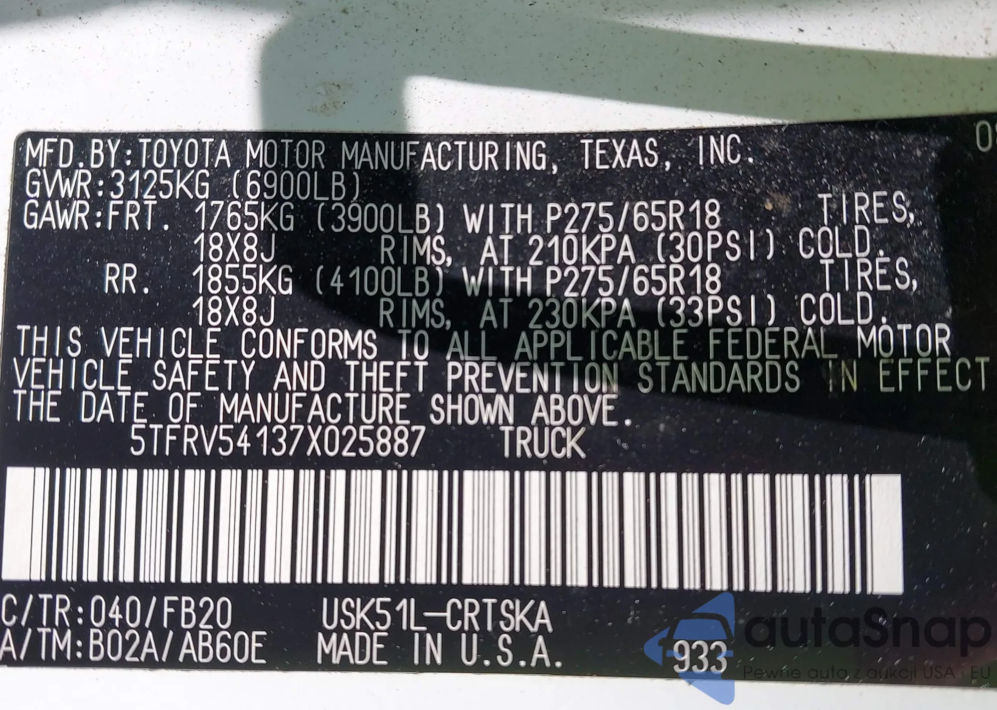 • VIN 5TFRV54137X025887