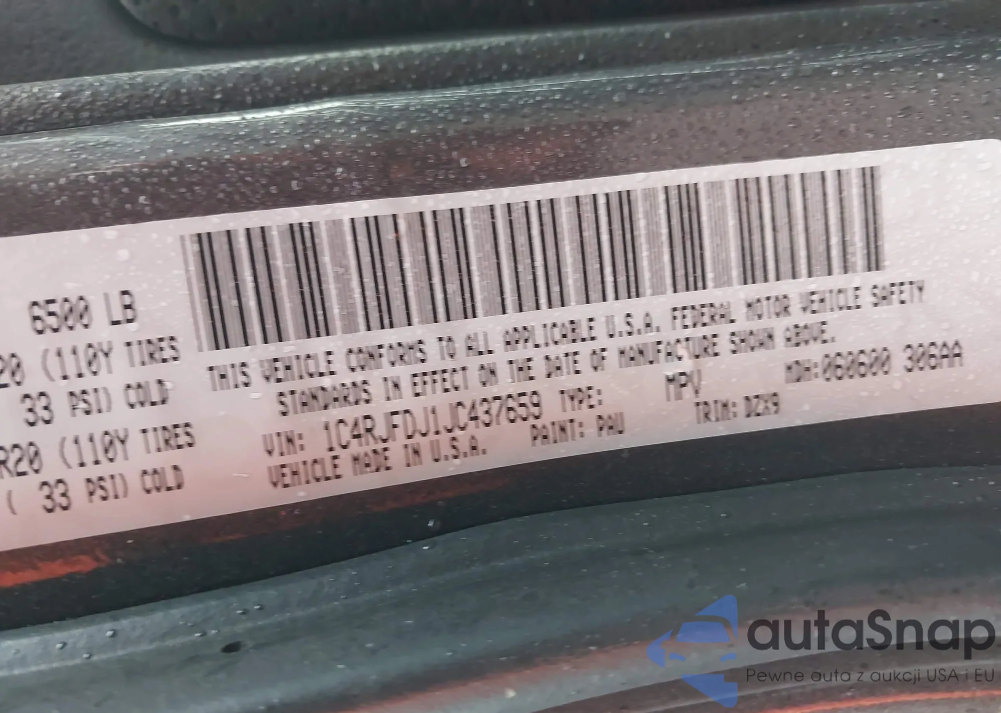 • VIN 1C4RJFDJ1JC437659