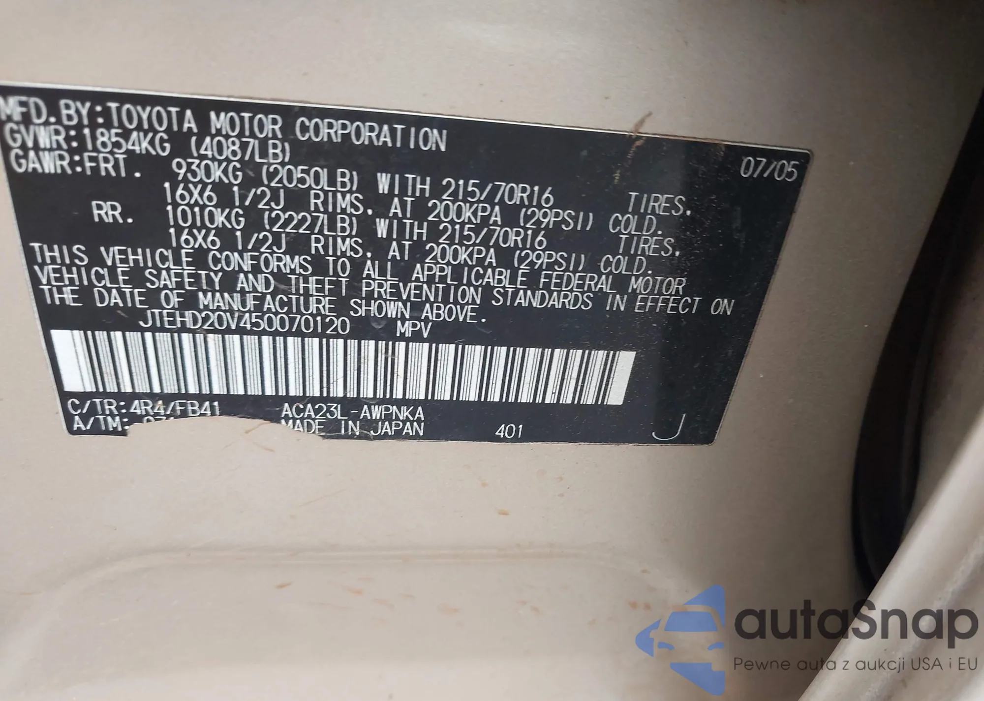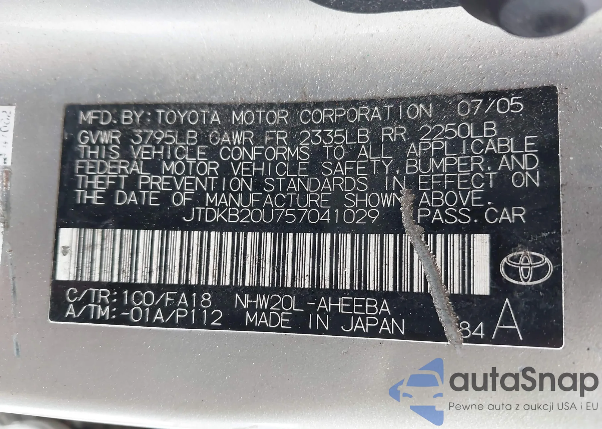 LOT: 42363903 VIN: JTDKB20U757041029