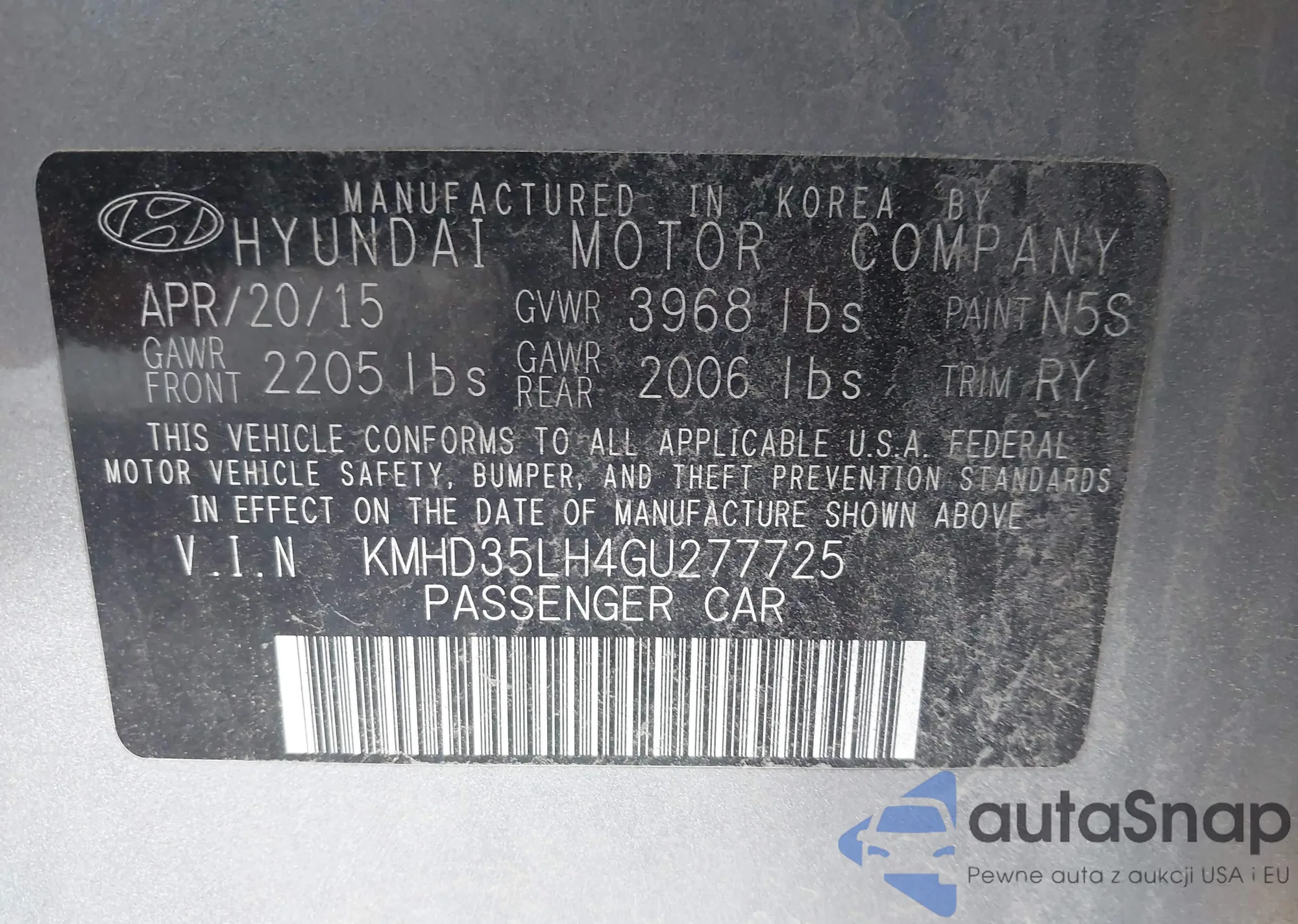 LOT: 42449614 VIN: KMHCT4AE5FU805799