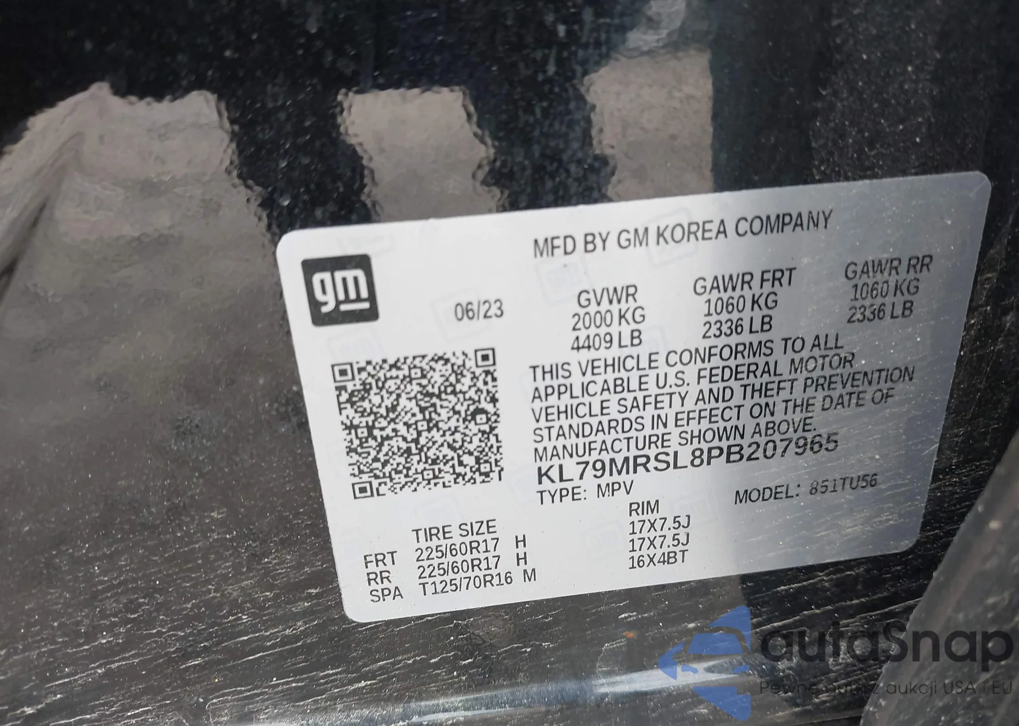 • VIN KL79MRSL8PB207965