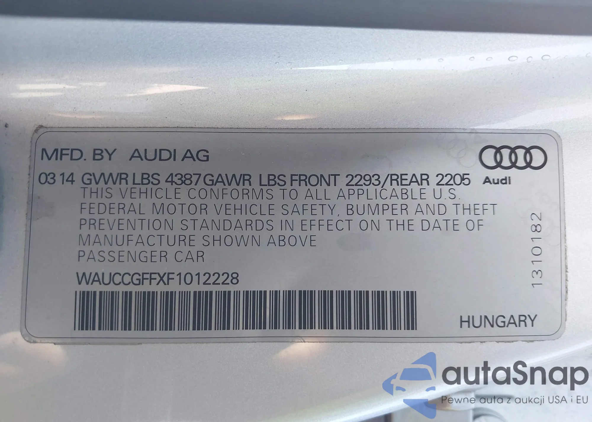 • VIN WAUCCGFFXF1012228