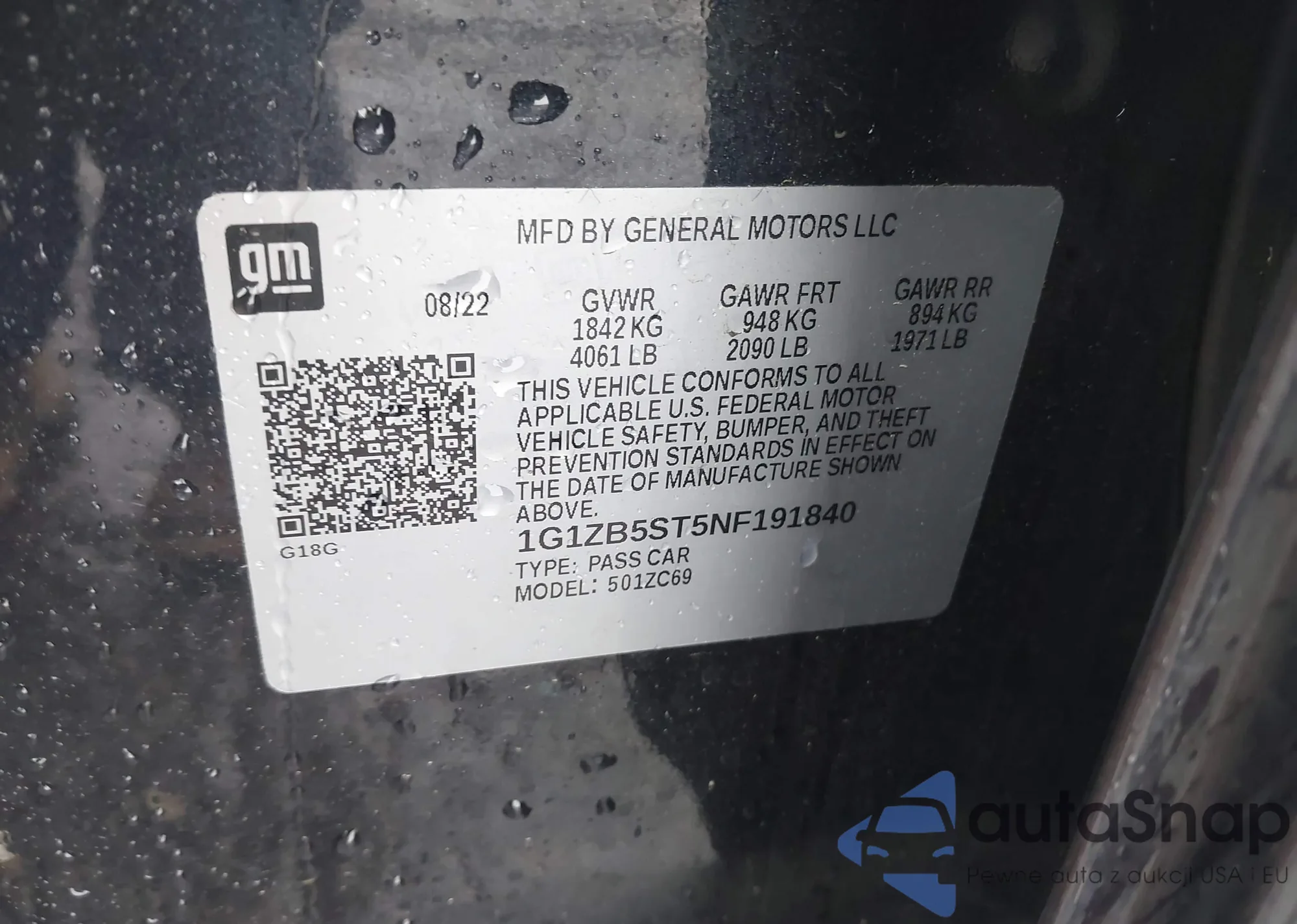 • VIN 1G1ZB5ST5NF191840