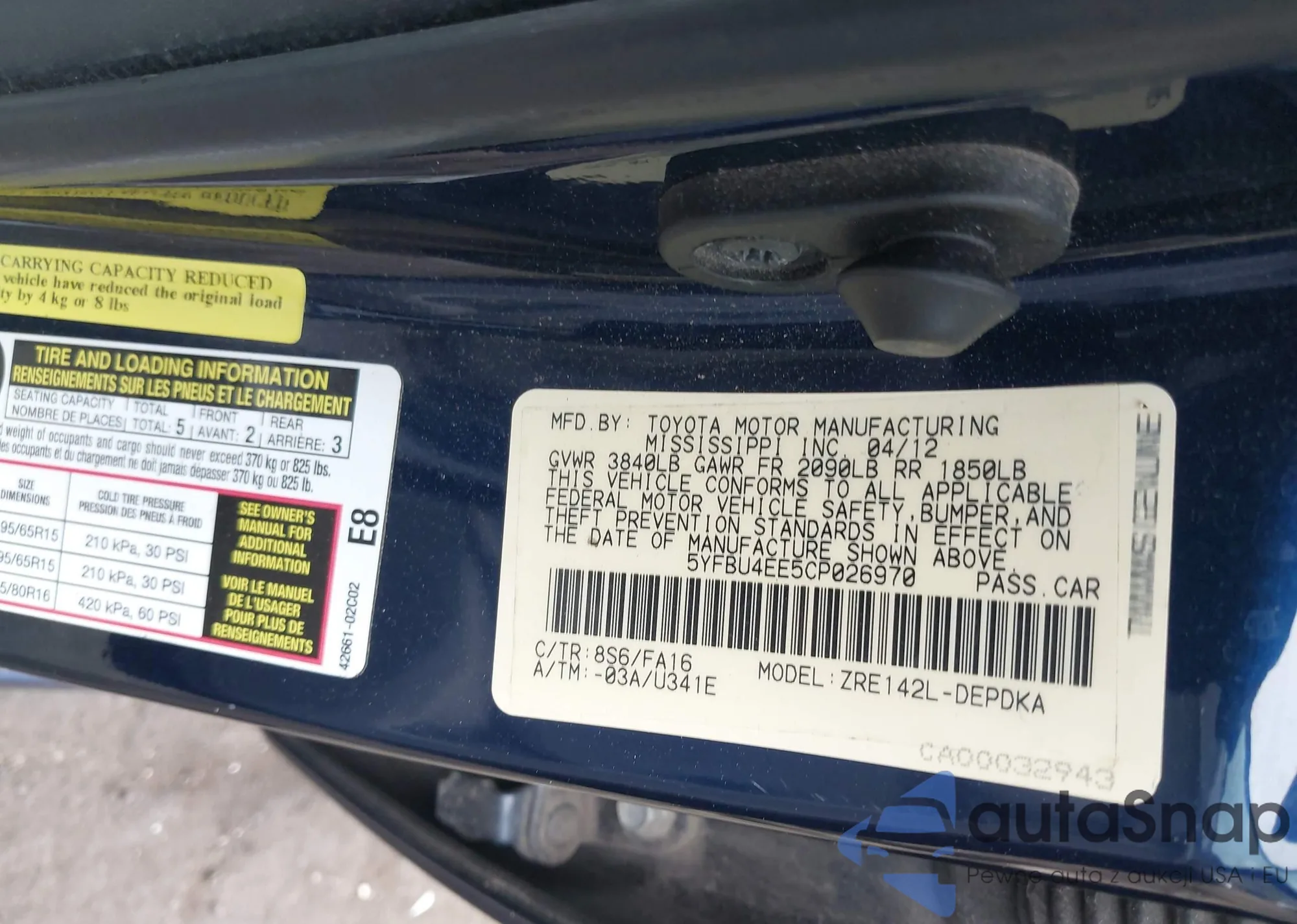 LOT: 42105058 VIN: 5YFBU4EE5CP026970