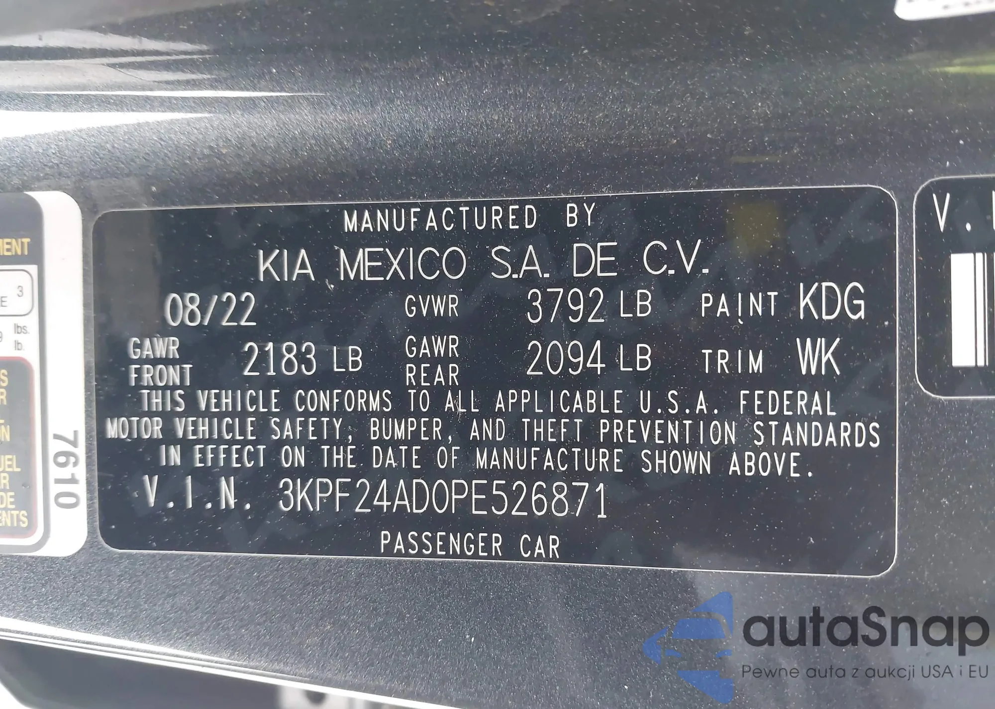 • VIN 3KPF24AD0PE526871