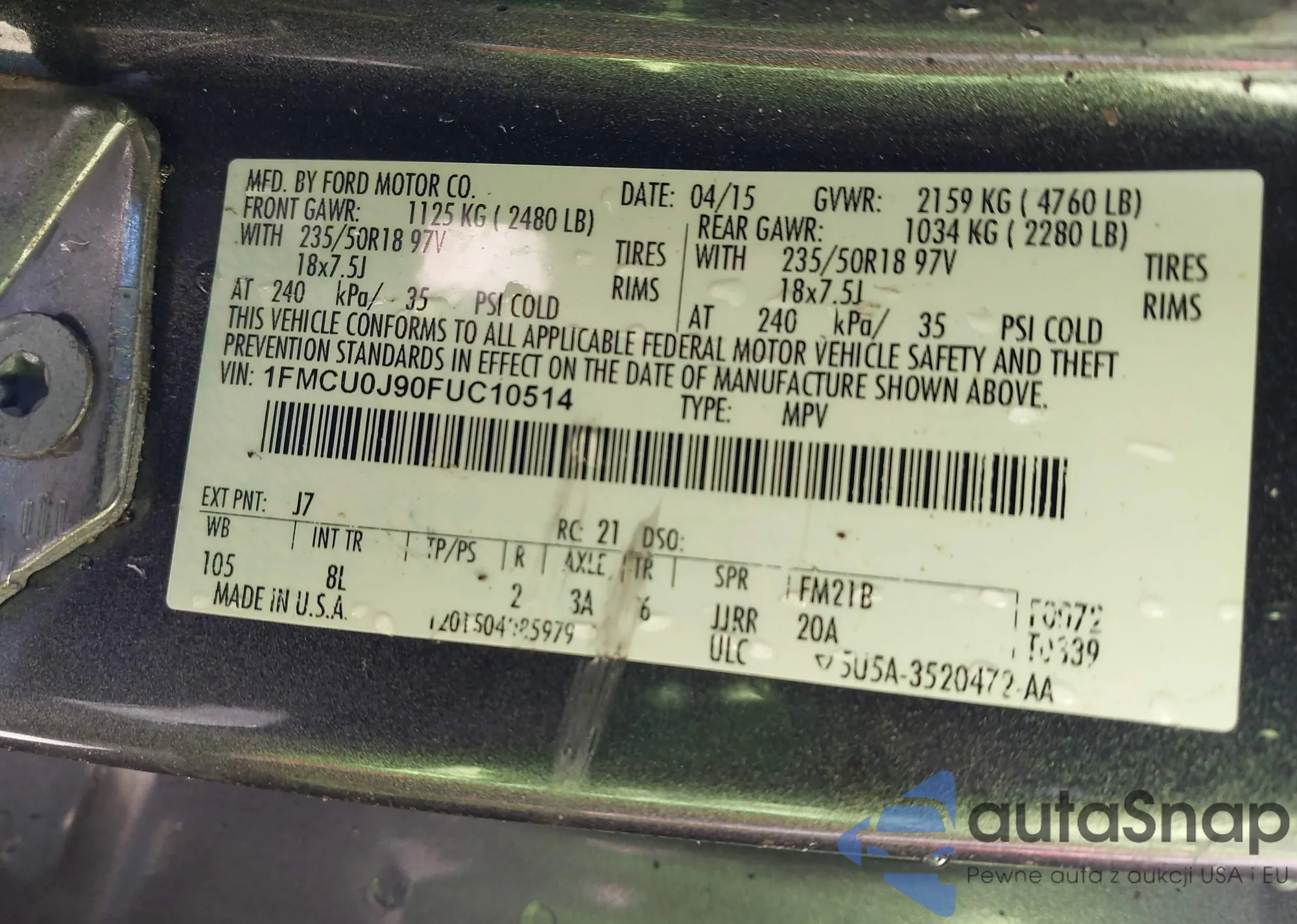 • VIN 1FM5K8GT7FGB57602