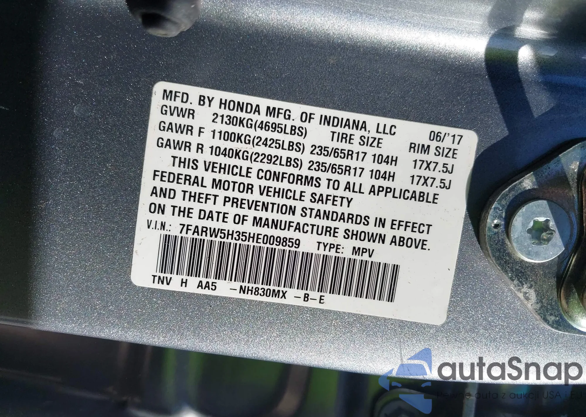 • VIN 7FARW5H35HE009859