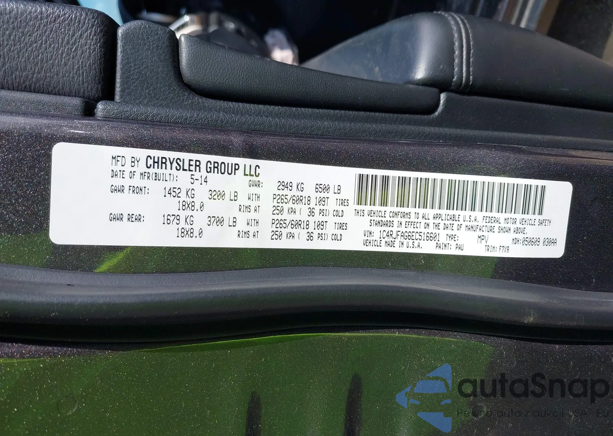 • VIN 1C4RJFAG6EC516601
