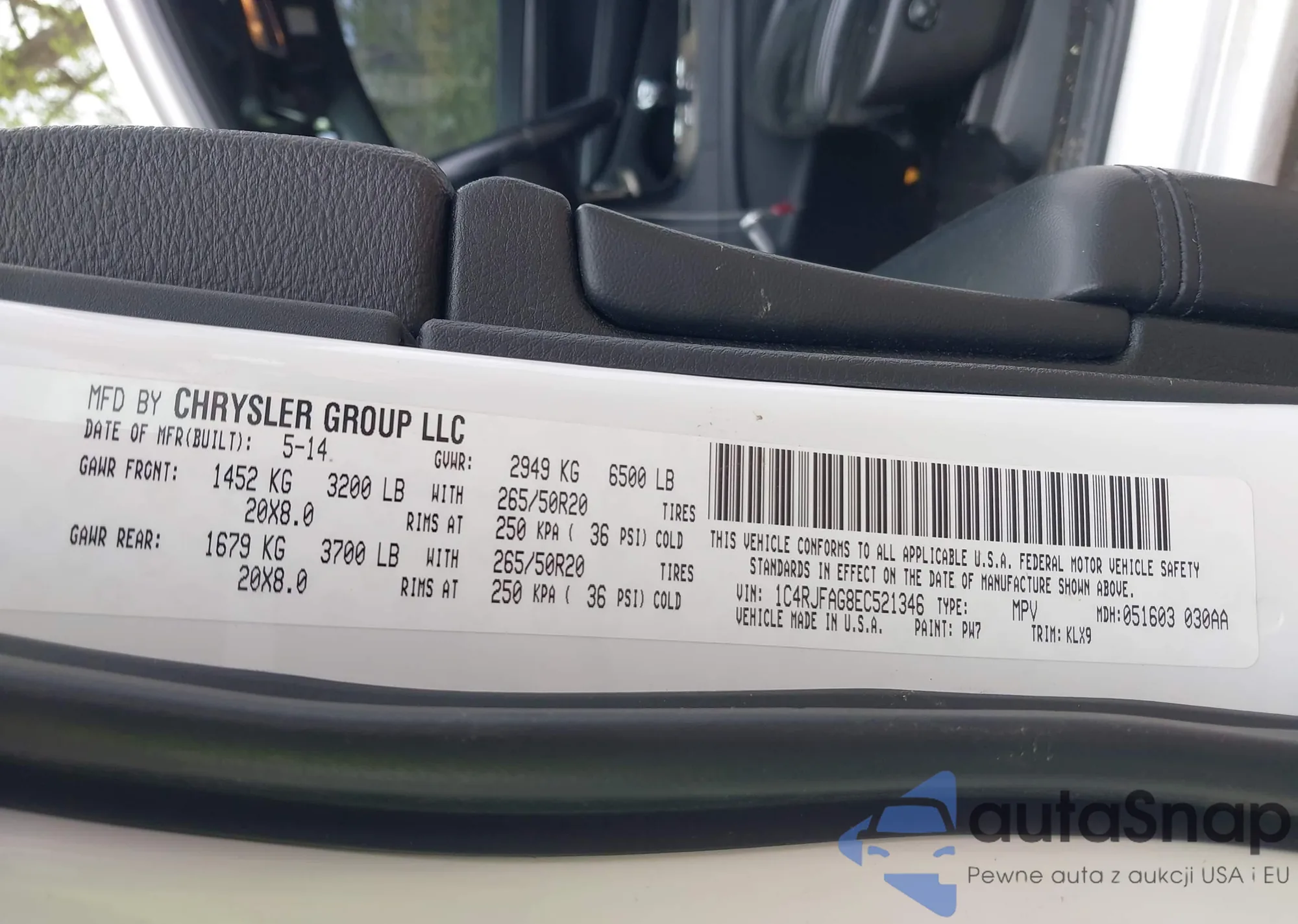 • VIN 1C4RJFAG8EC521346