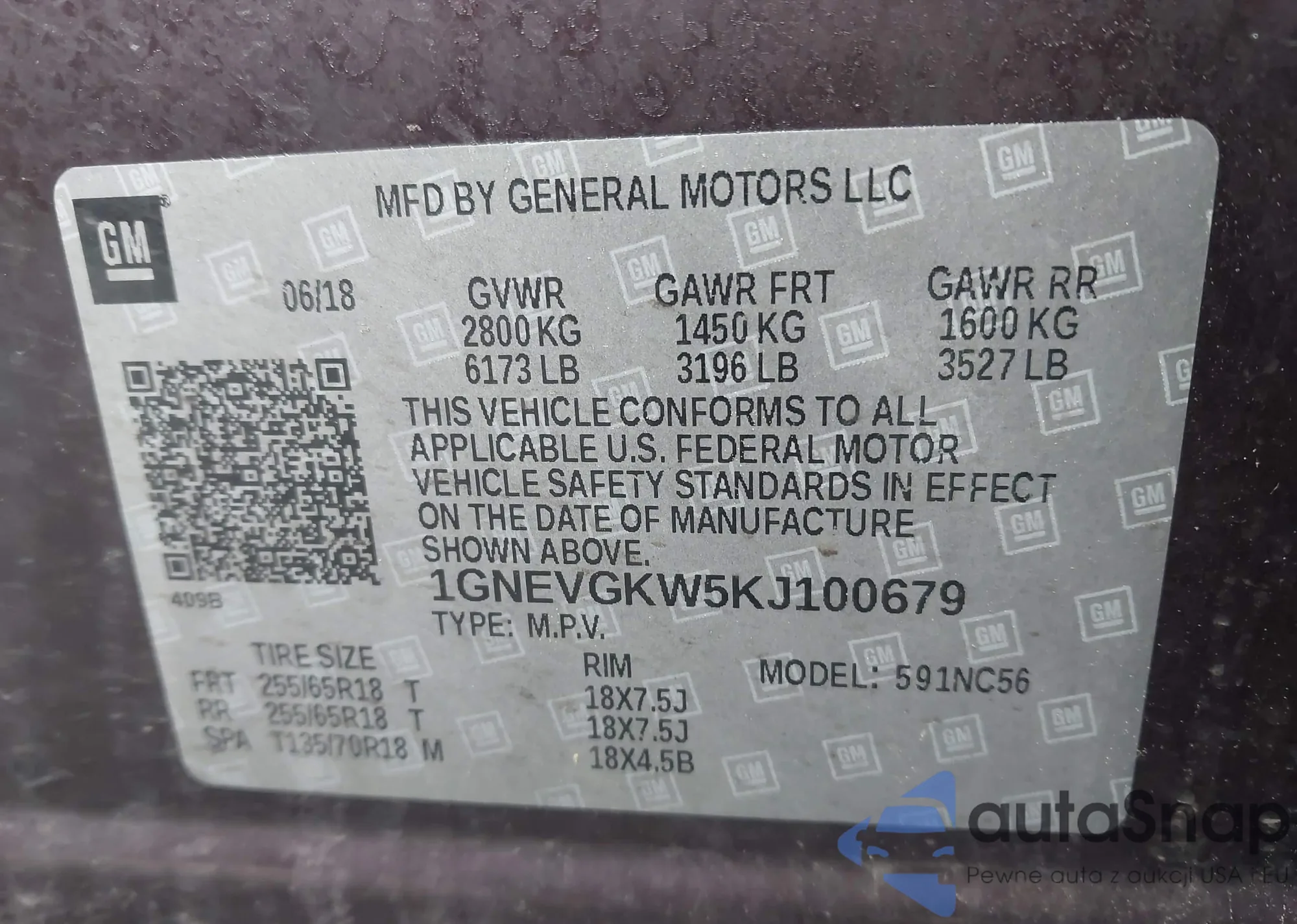 LOT: 42174447 VIN: 1GNEVGKW5KJ100679
