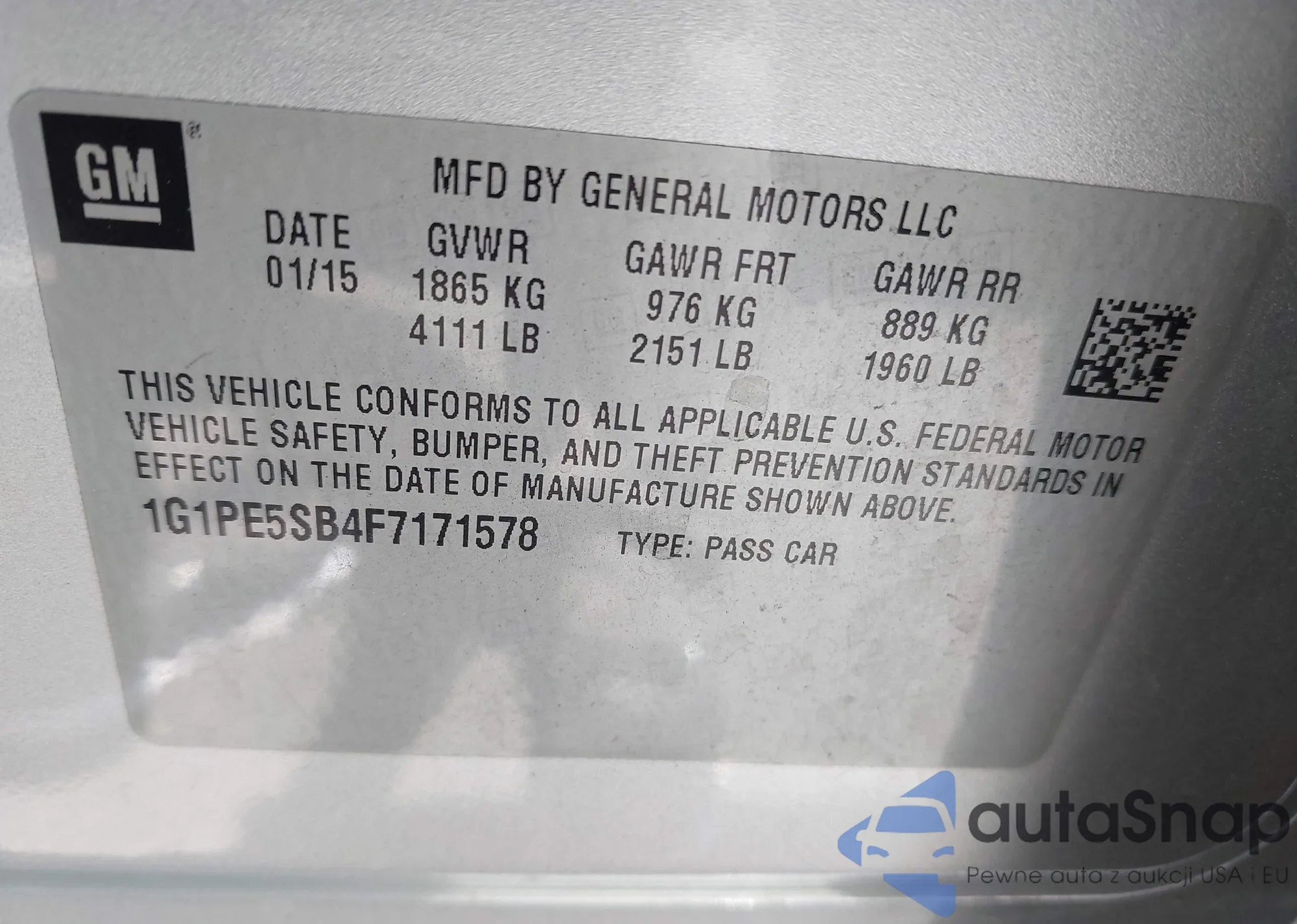• VIN 1G1PE5SB4F7171578