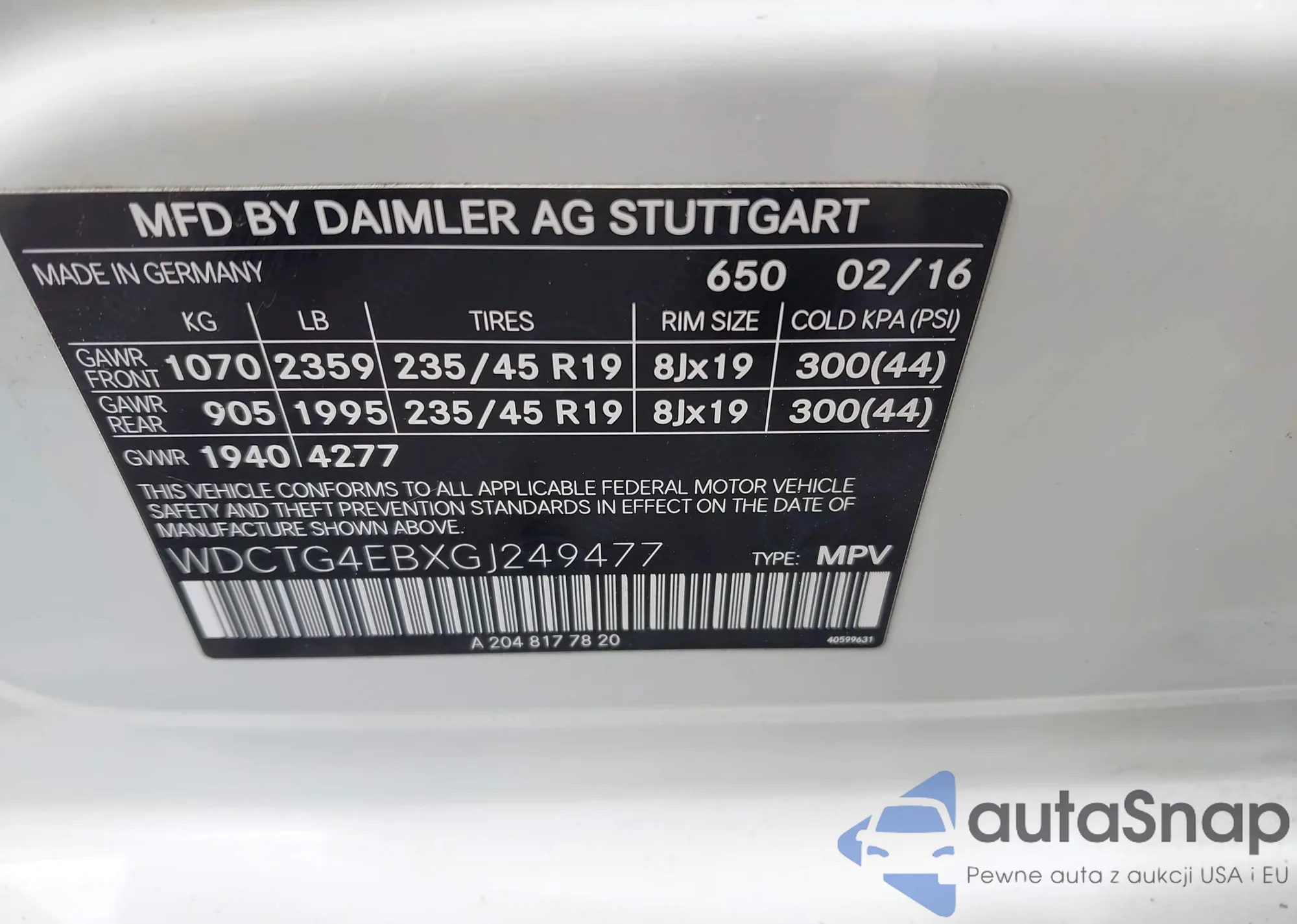 • VIN WDCTG4EBXGJ249477
