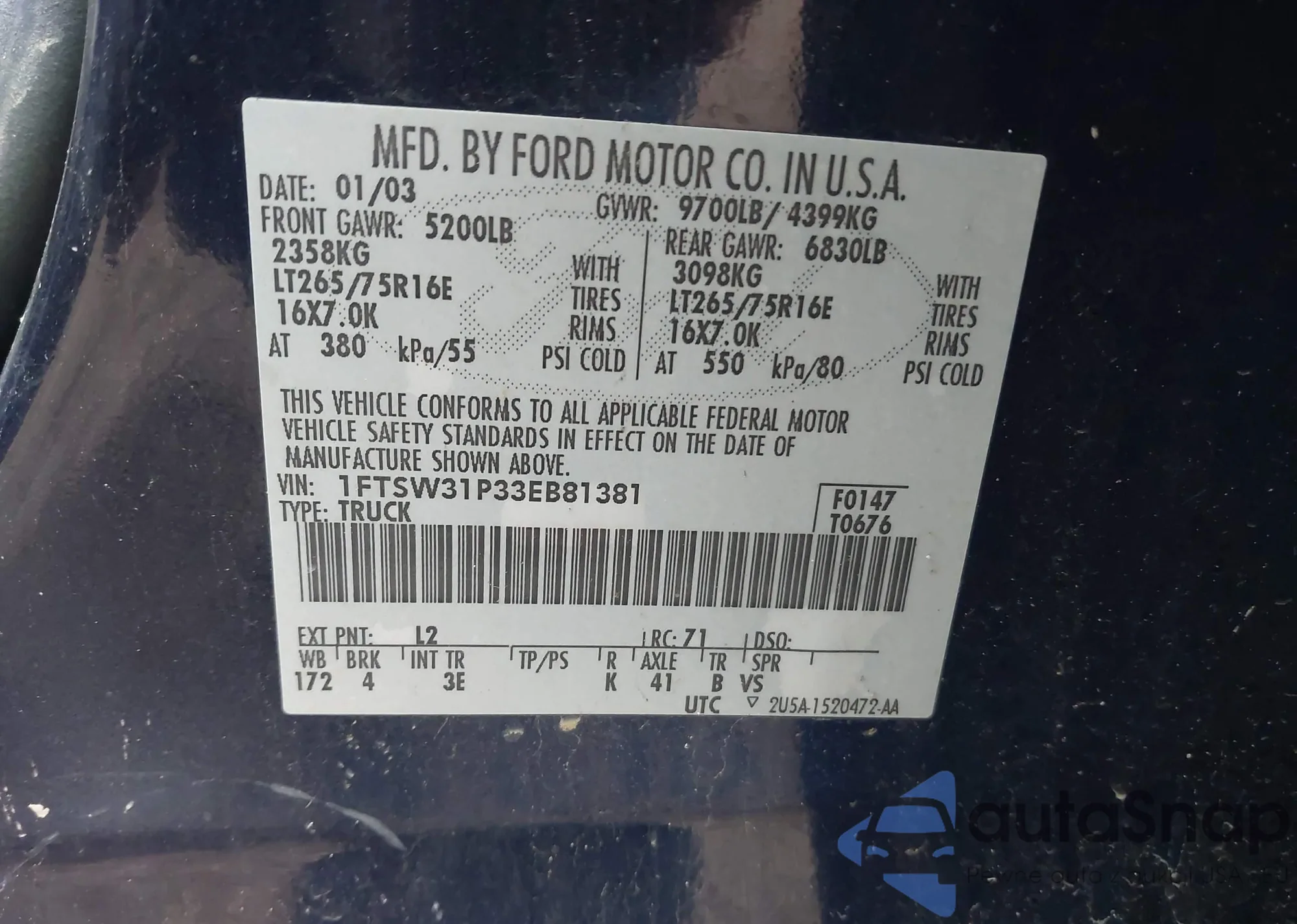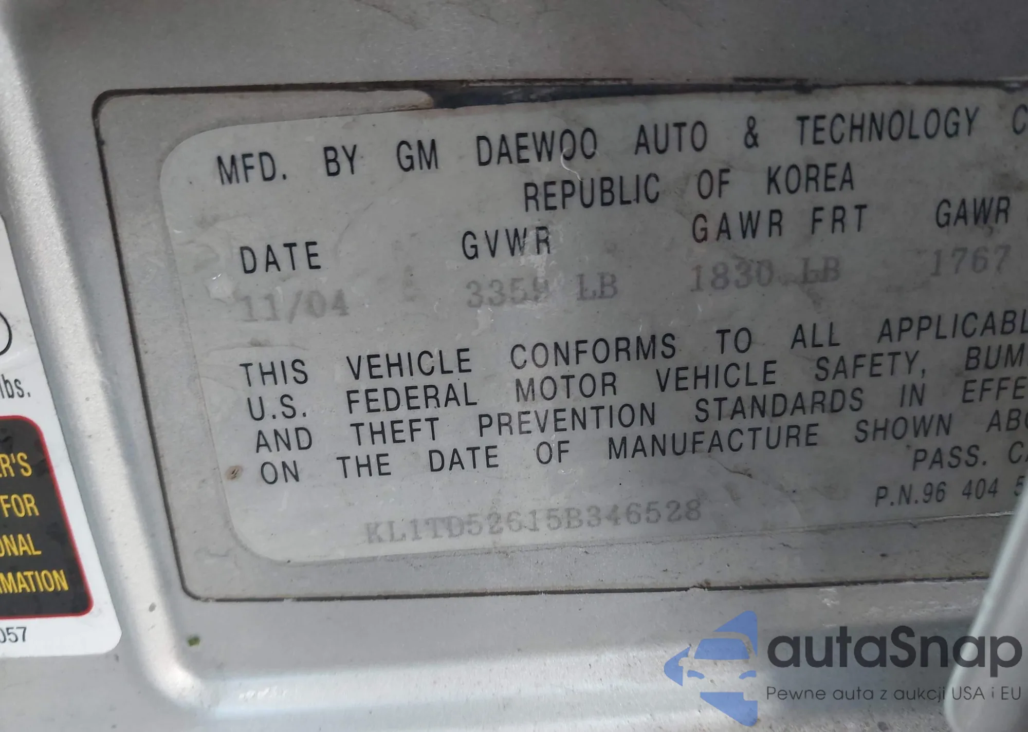 LOT: 42378239 VIN: KL1TD52615B346528