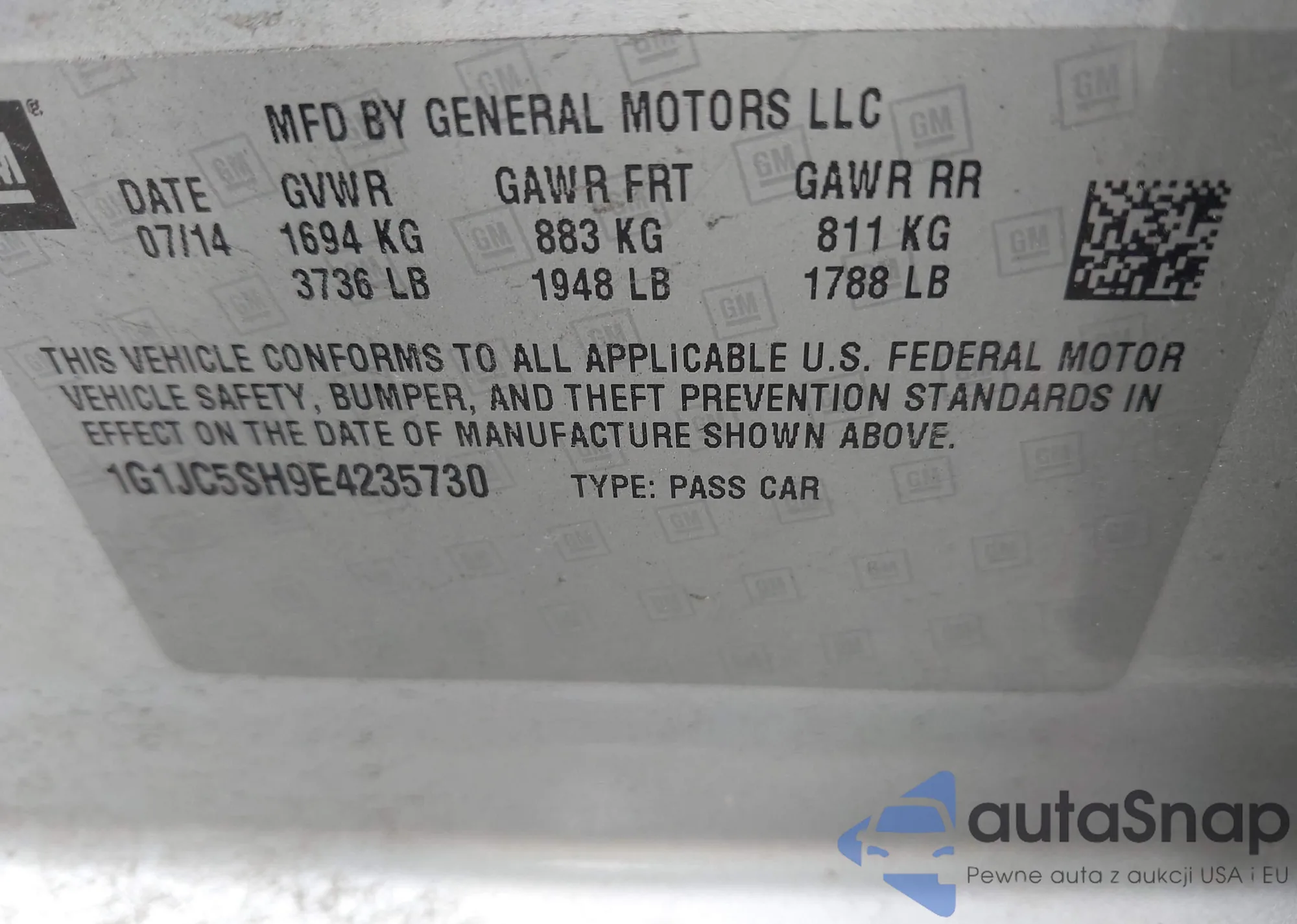 LOT: 42362707 VIN: 1G1JC5SH9E4235730