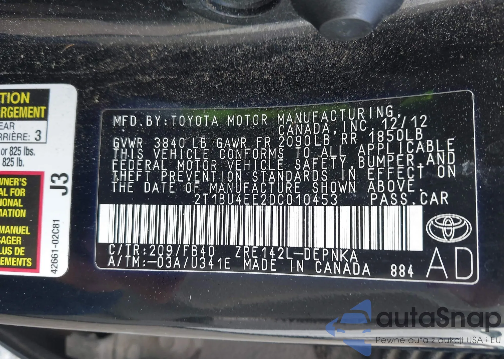 • VIN 2T1BU4EE2DC010453