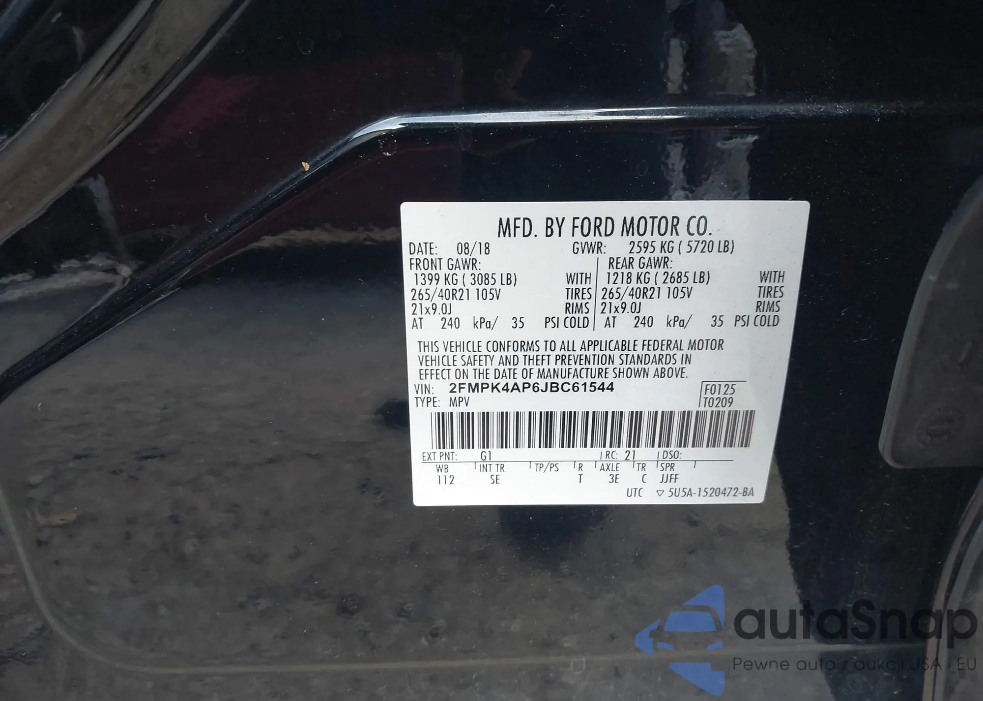 • VIN 2FMPK4AP6JBC61544