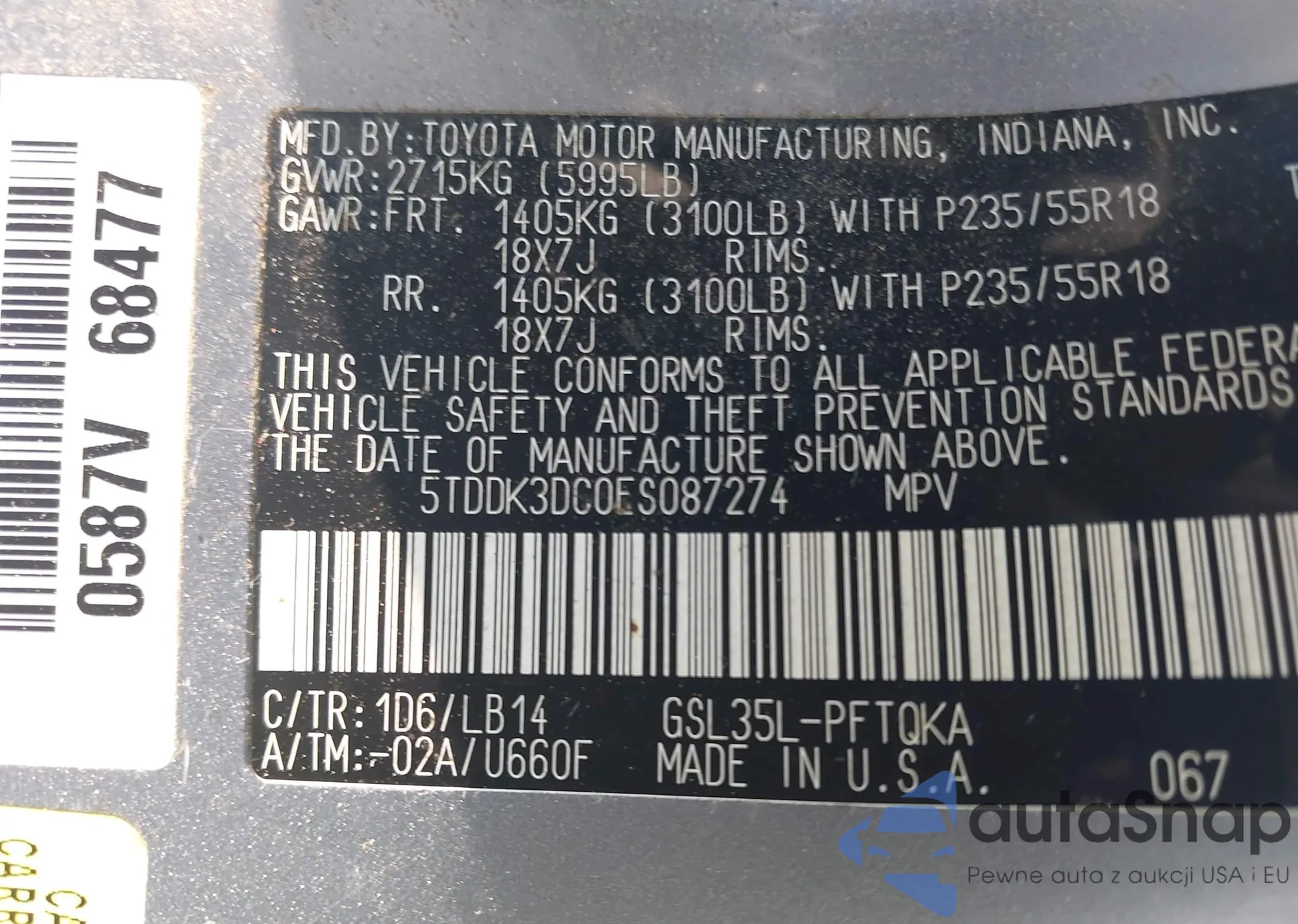 • VIN 1C4RJFBG0KC707070