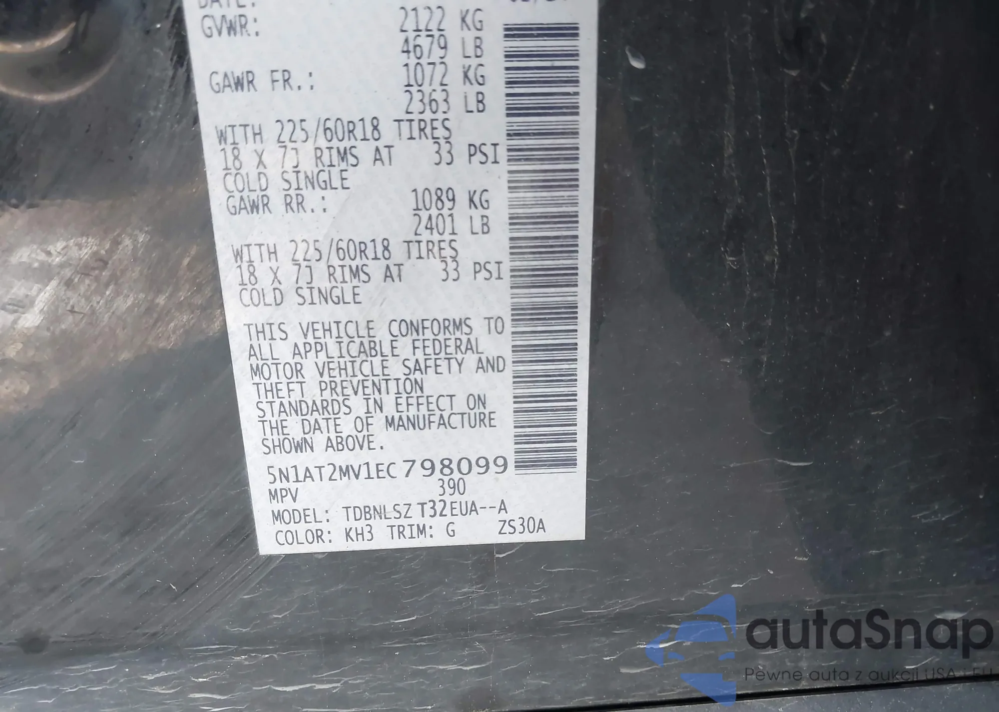 • VIN 5N1AT2MV1EC798099
