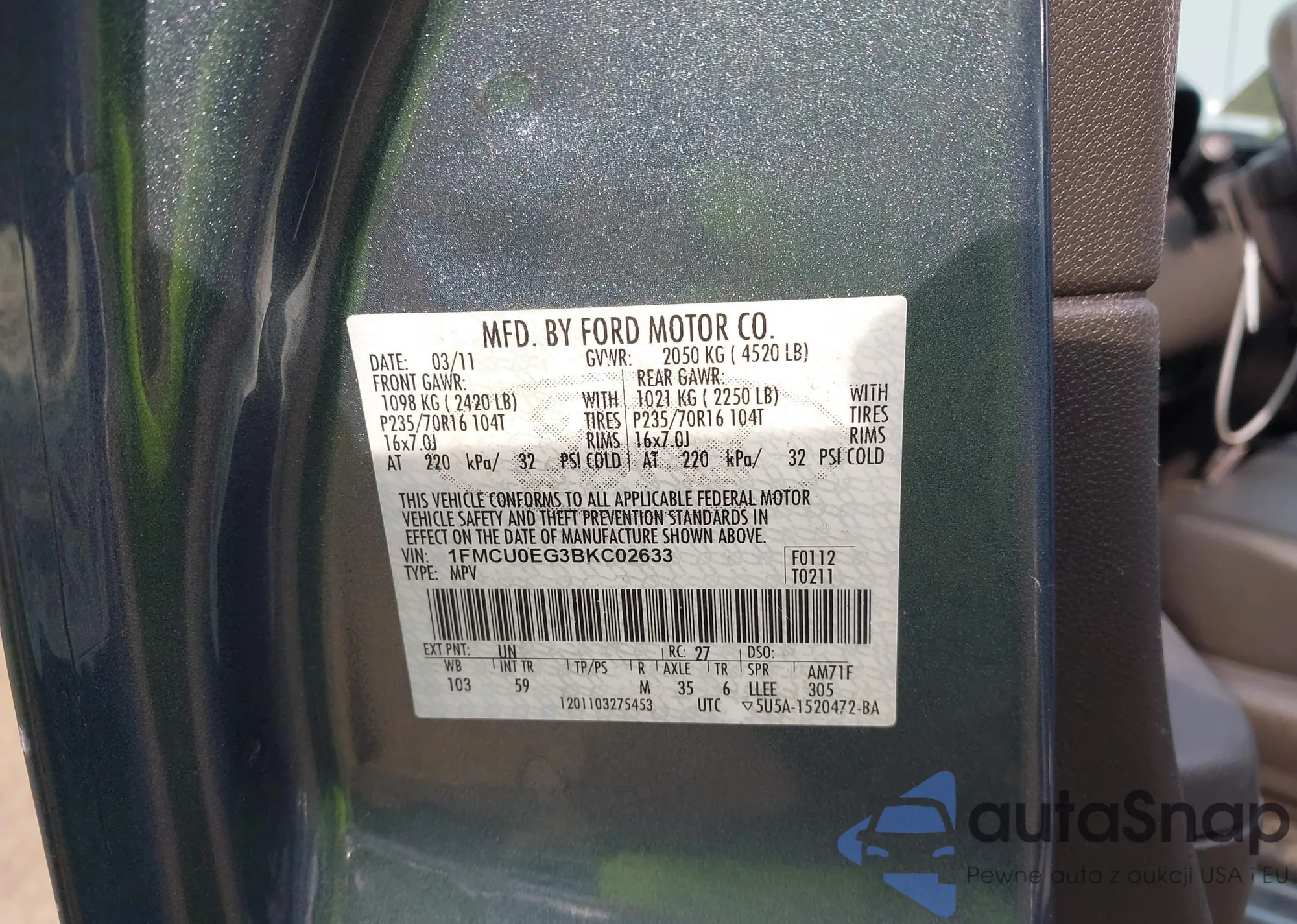 • VIN 1FMCU0EG3BKC02633