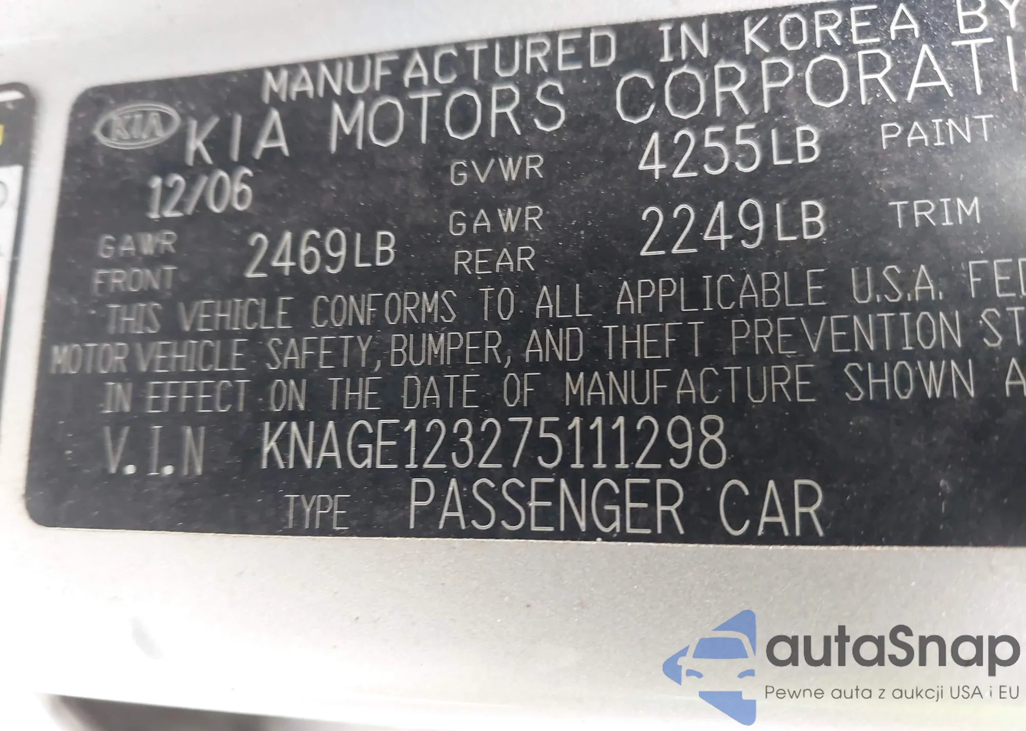 • VIN KNAG24J78S5275906