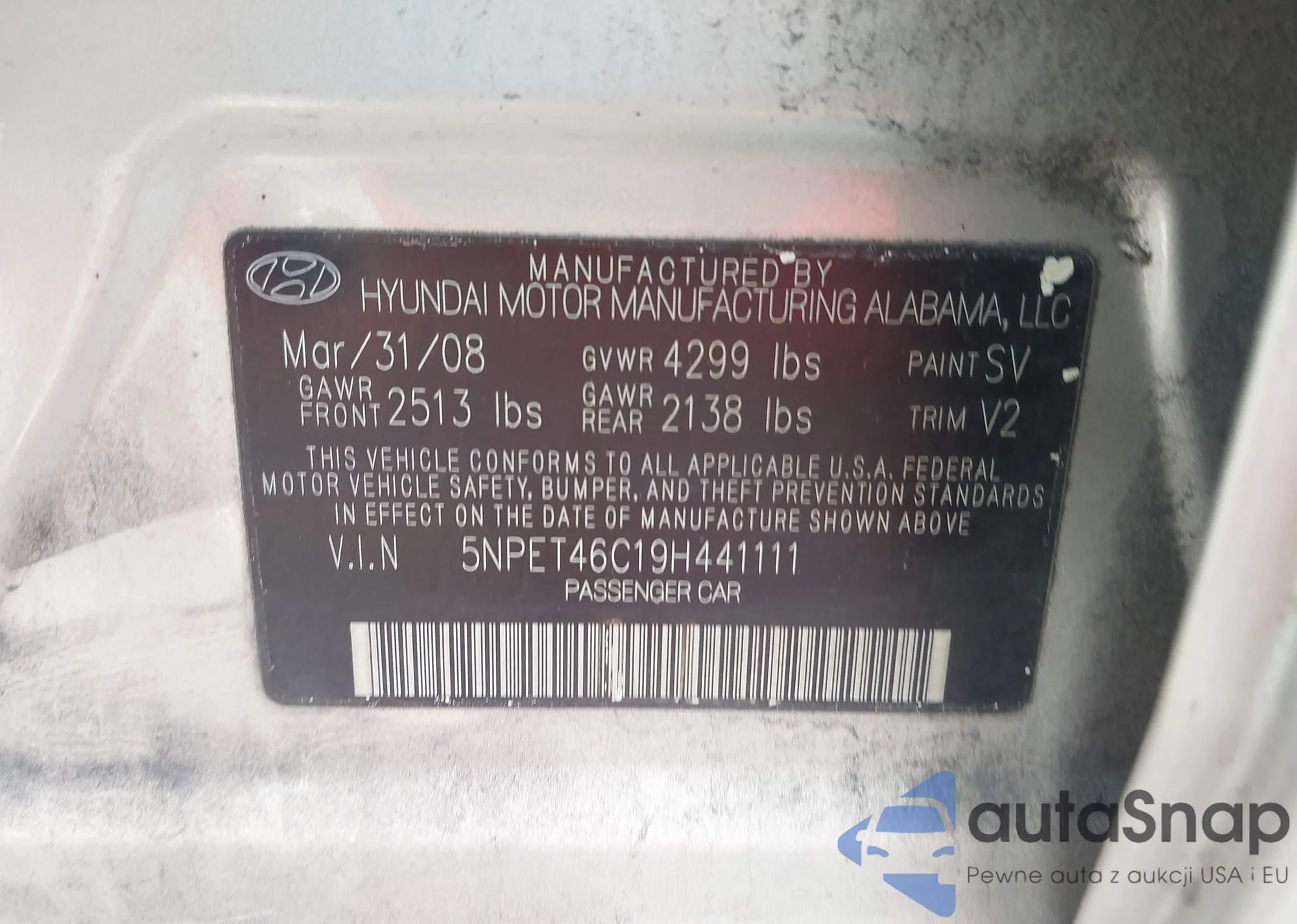 • VIN 5NPET46C19H441111