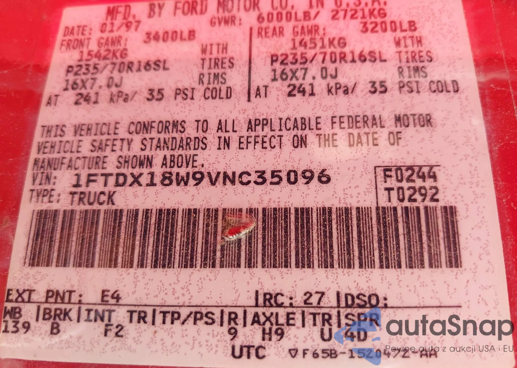 • VIN 1FTDX18W9VNC35096