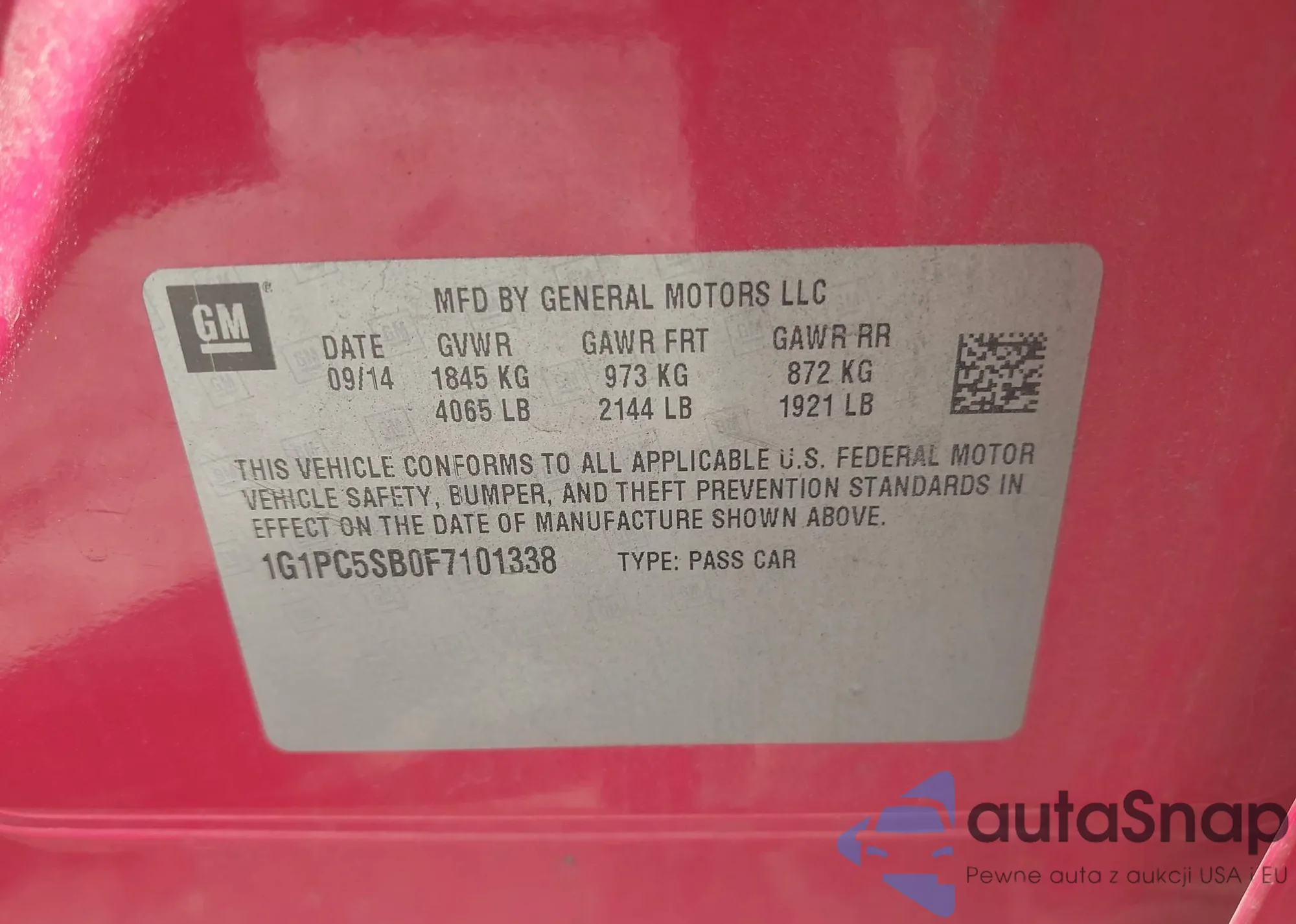 LOT: 42471216 VIN: 1G1PC5SB0F7101338